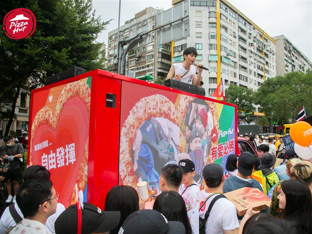 必勝客首次與「台灣彩虹公民行動協會」官方合作,打造全台唯一「Love Cam遊行車」,讓同志遊行成為公開傳遞愛的舞台。對花車鏡頭大聲說出想說的話,就能獲得必勝客大比薩兌換券1張;遊行時現場追蹤必勝客官方社群帳號(FB 或IG)更可獲得彩虹應援扇、必勝客優惠券等;而彩虹市集也有滿滿活動,於市集追蹤拍照打卡更可獲得彩虹應援扇以及切片美式臘腸愛心比薩1片(活動贈品數量有限,送完為止!)必勝客邀請大家大方說愛,無論何時何地,都能與所愛的人共享幸福滋味,和我們一起有愛必勝!