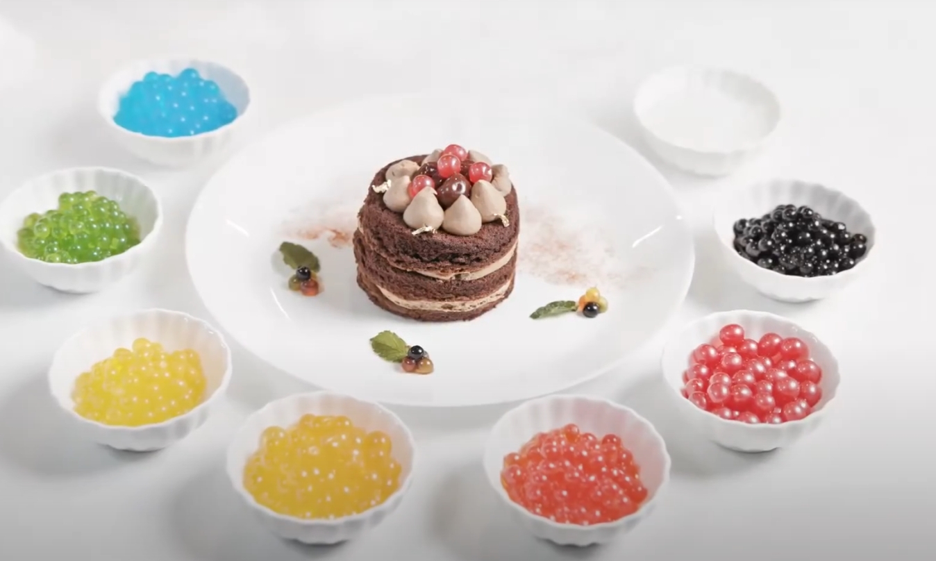 那層薄膜由海藻酸鈉和鈣離子反應形成,可以讓液體在咀嚼時爆開,帶來獨特的口感和趣味。在他們的對外影片,爆爆珠甚至可以包辣椒油!此外,爆爆珠不止可添加在茶飲、果昔、冰沙、優格、汽水、冰淇淋、蛋糕甜點、雞尾酒裡,更可以加在菜餚裡,增添新風味,看上去就是一道精緻無比的分子料理。