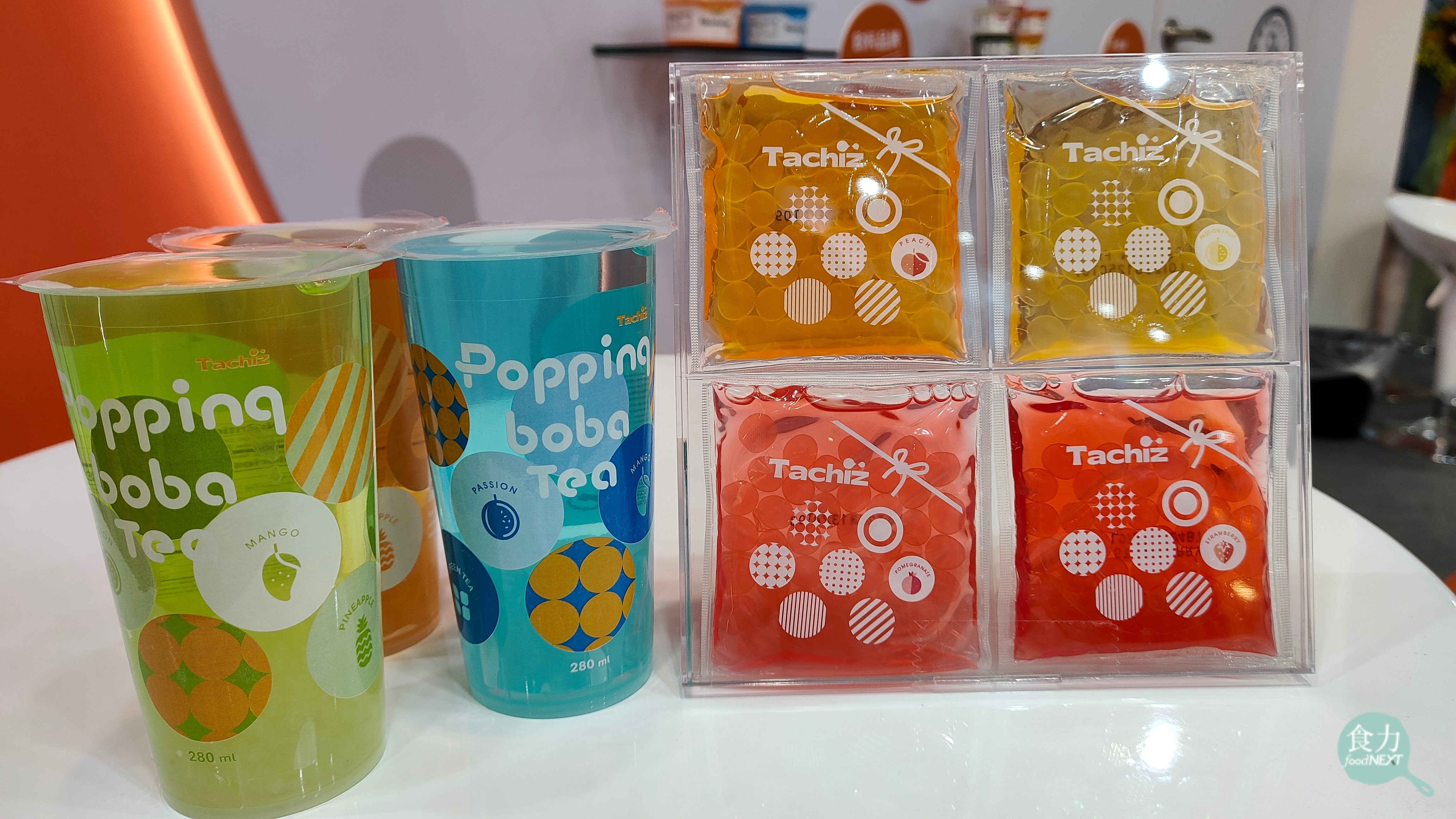 從台南北上參展的泰吉軒,生產高品質且令人驚豔的爆爆珠,產線已可24小時自動化生產。爆爆珠又稱「液體珍珠」或「爆爆蛋」,是一種利用分子料理技術,將液體包裹在薄膜中製成的食品。