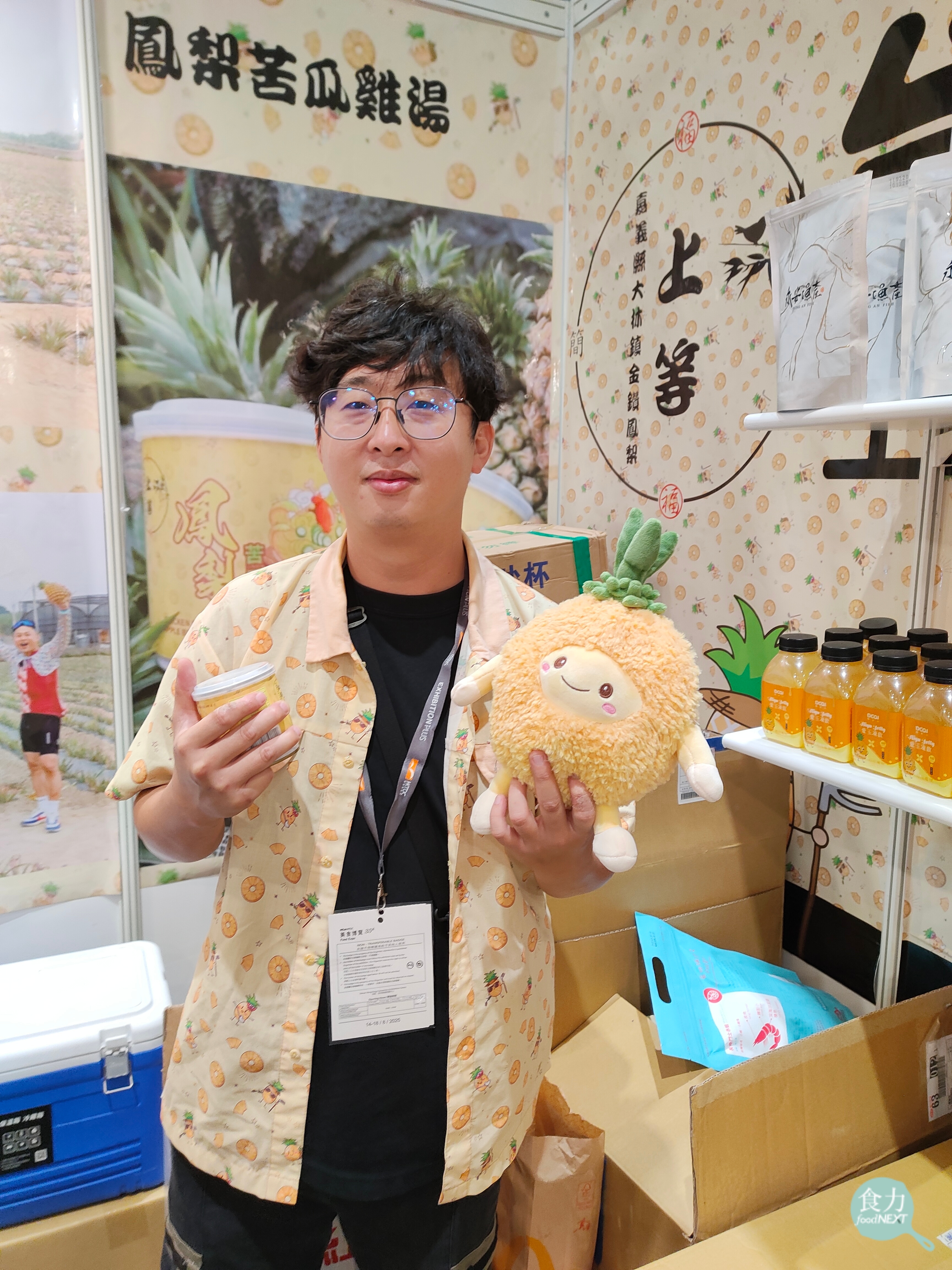 疫情期間,他也成功導入電商行銷策略、加強品牌曝光、並開拓多樣銷售通路,甚至將產品放上「嘖嘖」募資平台,顛覆過去僅賣鮮果的模式。而這次香港美食博覽會,他帶來了新研發3年才成功的「鳳梨苦瓜雞湯」罐頭,罐頭裡面還有大塊的雞腿肉,這也引起許多買家的好奇,圍觀詢問。