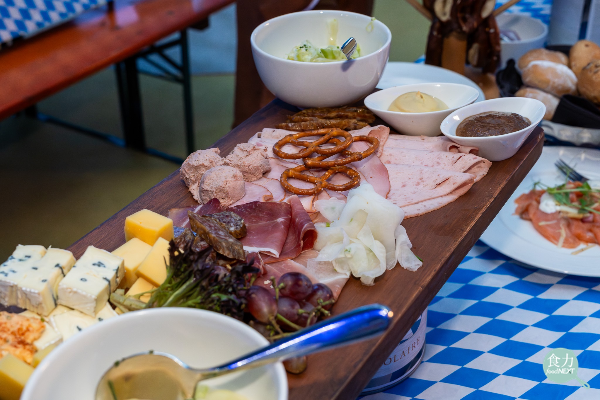 現場由德國主廚團隊親自掌勺,提供道地的豬腳、香腸、酸菜、椒鹽捲餅等經典菜色。(童儀展 攝)