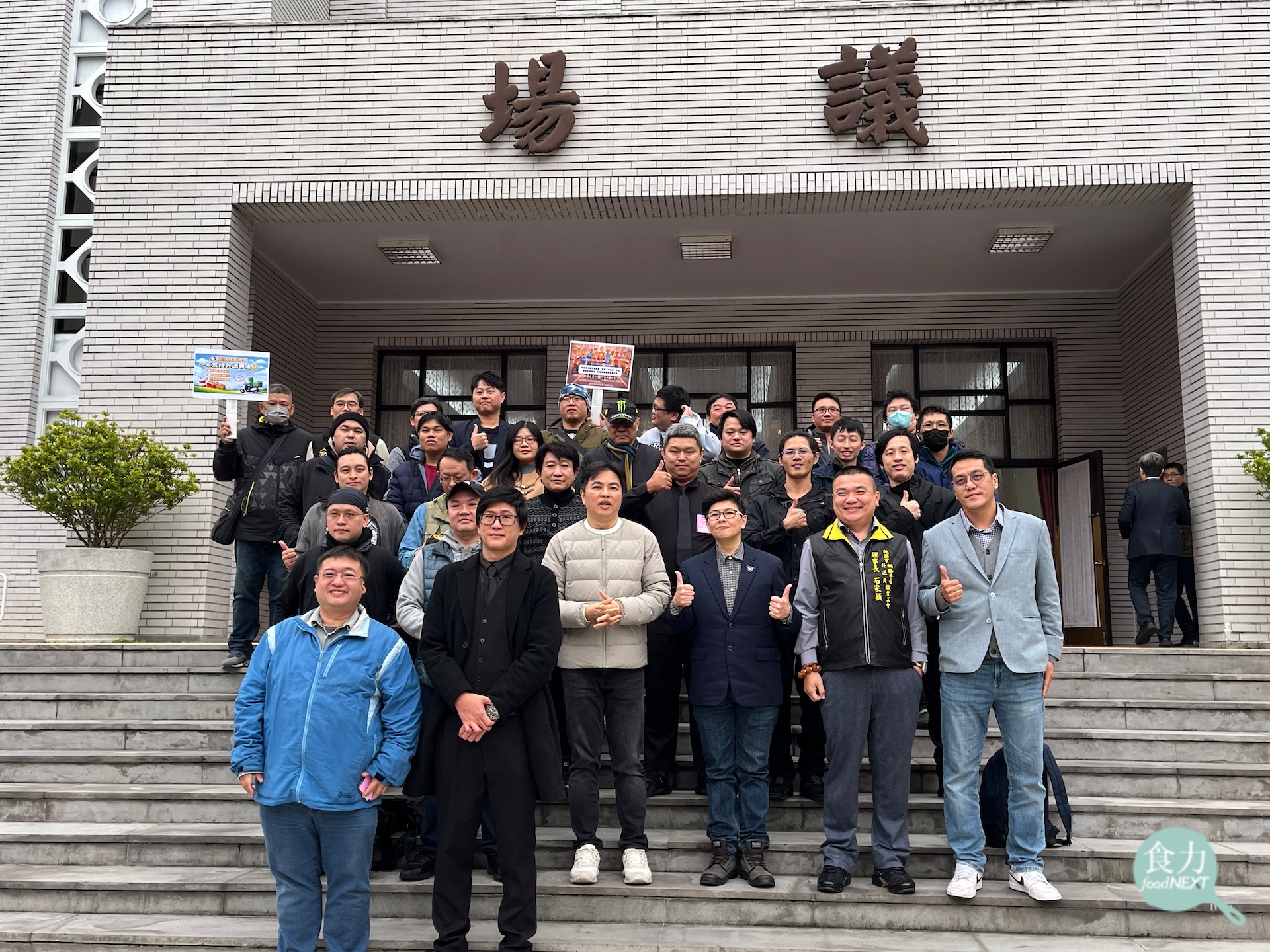 台灣外送產業權益促進聯盟表示外送員權益的爭取歷程已超過6年半,各地工會代表與外送員齊聚立法院,見證專法三讀通過的歷史性時刻。(林玉婷攝)