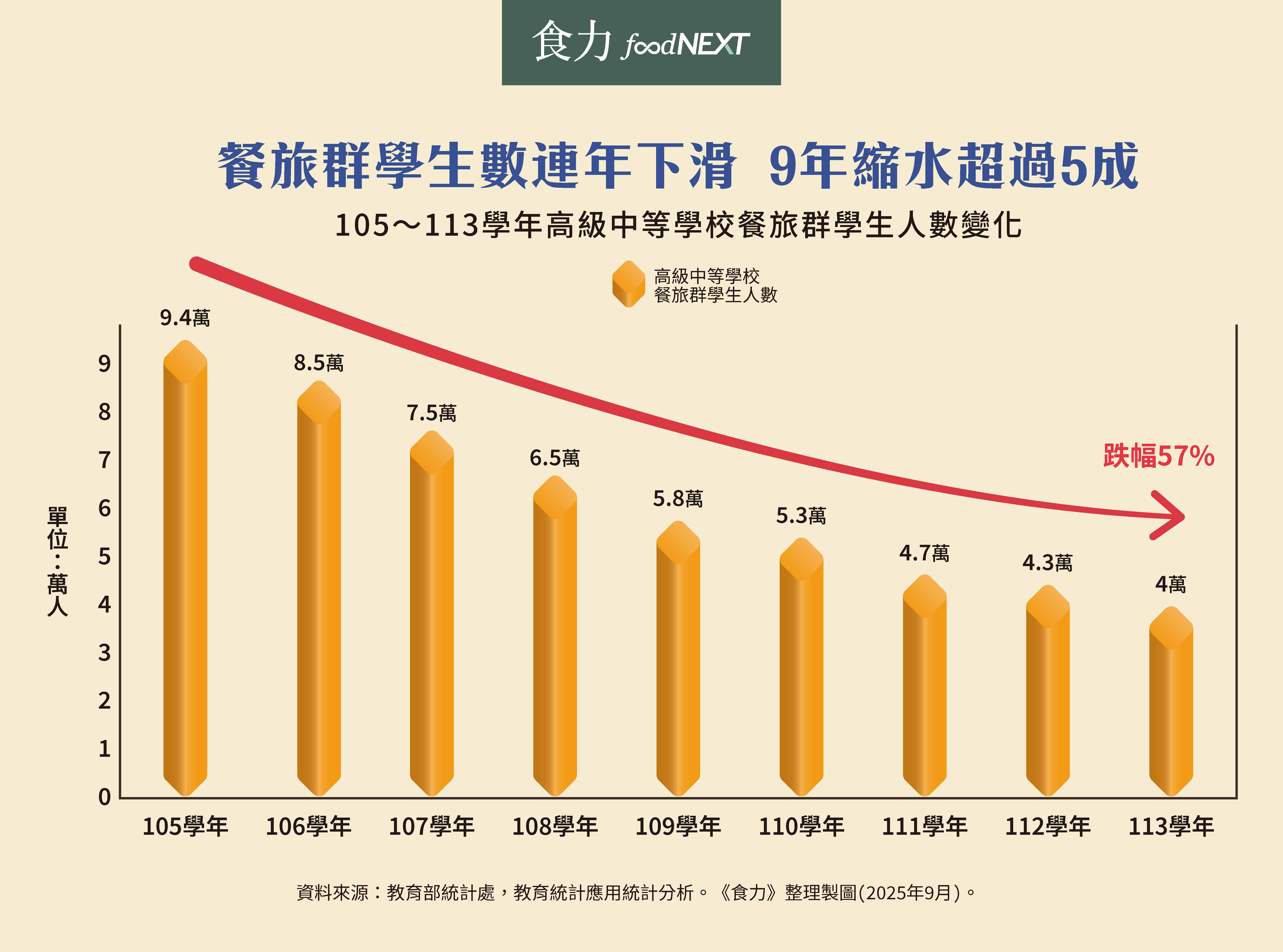 人才供給源頭萎縮 餐飲群學生數9年流失逾5萬人
