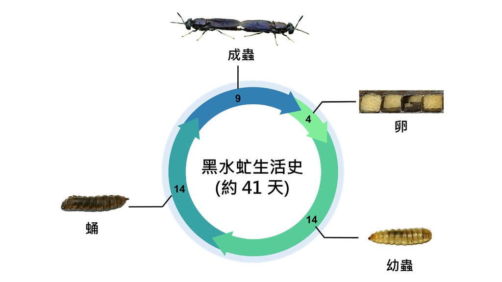 黑水虻是一種腐食性昆蟲,幼蟲能消化廚餘、農牧有機質,轉化成自身的蛋白質和脂肪,並排出富含有機質的糞便,再製成飼料、肥料,去化廚餘之餘還具有循環價值。