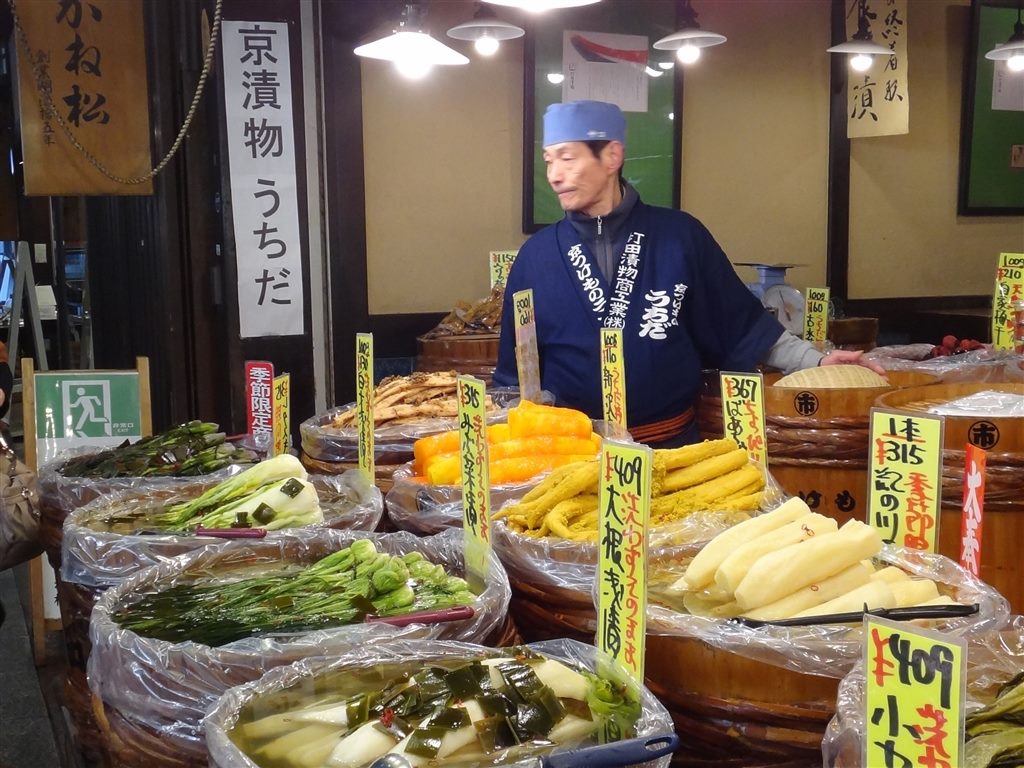 當我看到錦市場魚舖的學徒們不停地擦拭清洗工作檯面、白髮蒼蒼的老婦馱著背專注地把漬物排列整齊時,腦海裡出現的對比畫面是,台灣菜市場裡魚販在鋪滿魚鱗內臟的砧板繼續殺魚賣魚、醬菜攤上的梅干菜、菜圃、醬瓜被放在套了黑色大塑膠袋的橘色塑膠統裡…….不免感概:當年輕世代不斷仿效歐美日的生活風格時,有些台灣傳統場域裡的陳年積習卻無人聞問,如果能從最基本的食品衛生改善起,這些傳統菜市場裡攤販自然不用擔心超市超商的競爭,而能找到更簡單更永續的生存之道。