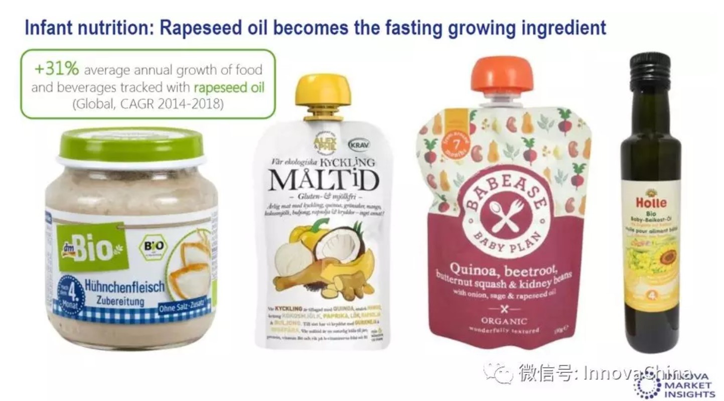 含有豐富維生素的菜籽油成為嬰幼產品新寵兒,年均複合增長率達到31%。(圖片來源:INNOVA提供)