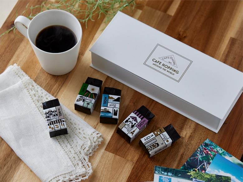 最新上市的「Heart With」產品線以旅行為主題,藉由享受一杯咖啡的閒暇,讓白日夢帶著消費者到心所嚮往的城市悠遊。沿用旅遊業的跳島通行票概念,這盒稱為「Cafe 跳遊」(Cafe Hopping Ticket)的咖啡分別以各大機場的縮寫命名:奧斯陸(TO OSL)、我的城市(MY CITY)、墨爾本(TO MEL)、巴黎(TO CDG)、檀香山(TO HNL)共5款。