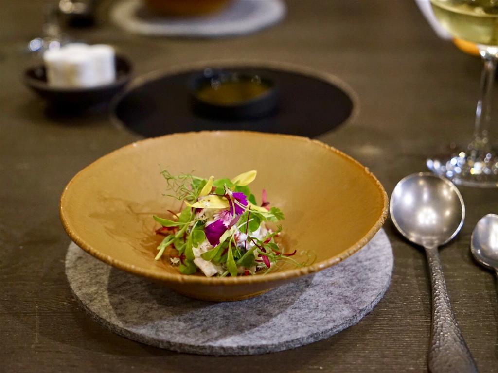 Gildas Périn原為「STAY」的副主廚,首次獨挑大樑,我在2018年8月時去試菜,對其印象是企圖心十足、基本功紮實,嫻熟當前的高端餐飲語彙,該吸睛的、該講故事的,都有做到,但對於味道的掌握可以更細緻靈敏;不過短短一個多月後,這次再嚐,就已經有所調整。
