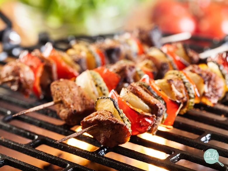 要降低PAHs形成的傷害,一邊吃烤肉一邊多吃些新鮮的蔬菜水果也有幫助。另外,以前我曾碰過好幾個案例,因為烤「肉」越吃越涮嘴,吃了大量蛋白質卻沒有補充足夠的蔬菜水果纖維,結果導致脹氣、便祕等腸胃消化問題。建議肉類可以搭配生菜包著一起吃,或者是將筊白筍、甜椒、青椒、菇類、茄子、櫛瓜、洋蔥等蔬菜食材切成塊狀,和肉類食材穿插做成肉串,這樣一來可以同時攝取到膳食纖維,不知不覺也能降低食肉量。