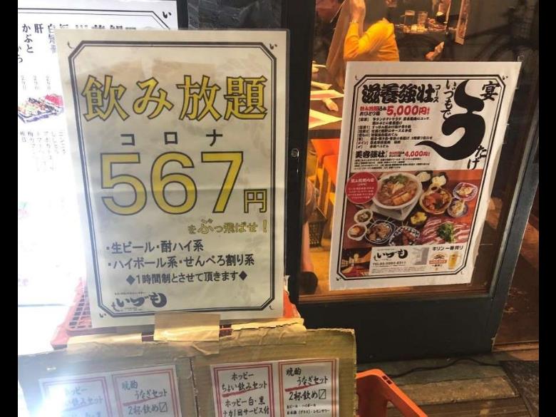 Corona(567)促銷是巧妙利用了新冠肺炎的「Corona」發音,又與日文的「567(コロナ)」諧音,因此日本許多餐廳同時打出了特價日幣567(約為台幣160元)的促銷方案,希望吸引人氣。這價格當然看起來很誘人,相信很多餐廳推出這價格也是在淌血,不過這節骨眼集客是王道,有些促銷確實吸引了難得的消費人潮。