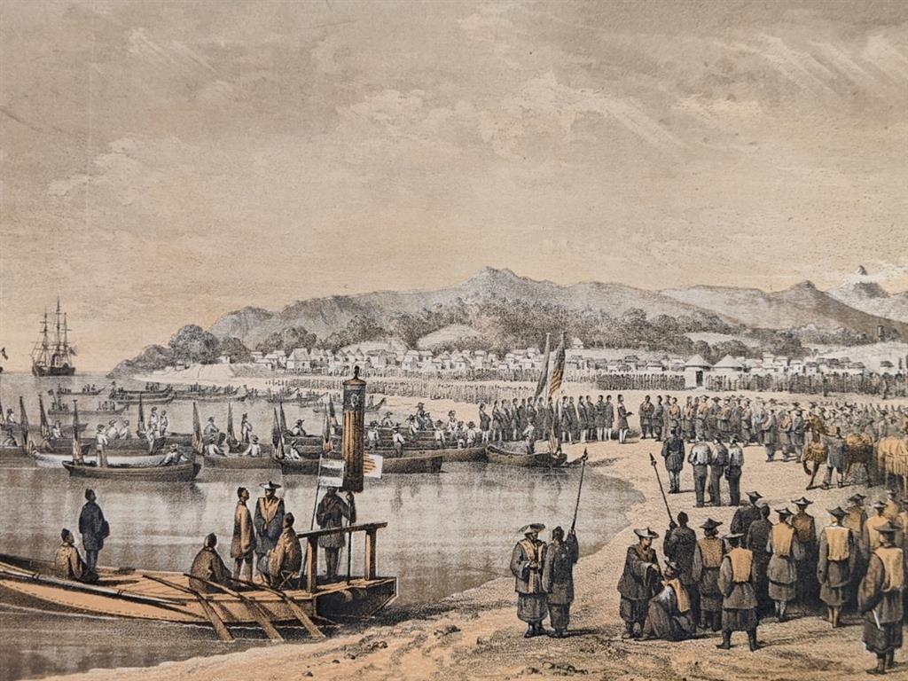隨船畫家William Heine紀錄下培里二度造日的景象。(圖片來源:邱德夫提供)
