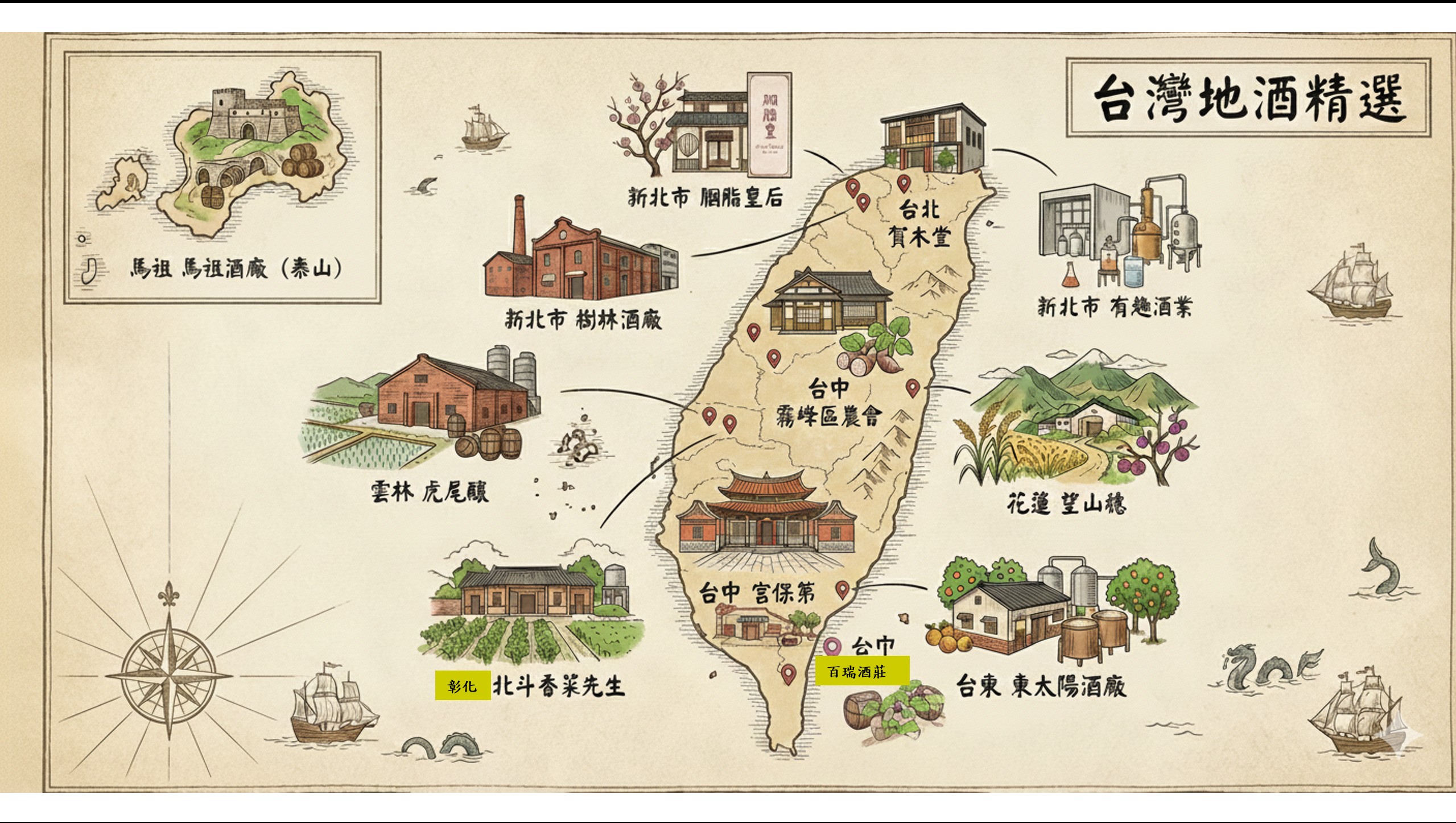 酒莊與品牌若僅靠「產地風味」吸引消費者,難以形成長期吸引力與忠實客群,需要更具體的消費體驗和節慶購買機會才能提升競爭力。這次我將台灣地酒的三大特色:農產再生、文化故事、技術升級作為主軸,找到不少積極努力經營的品牌來介紹,以下包含全國共12家。