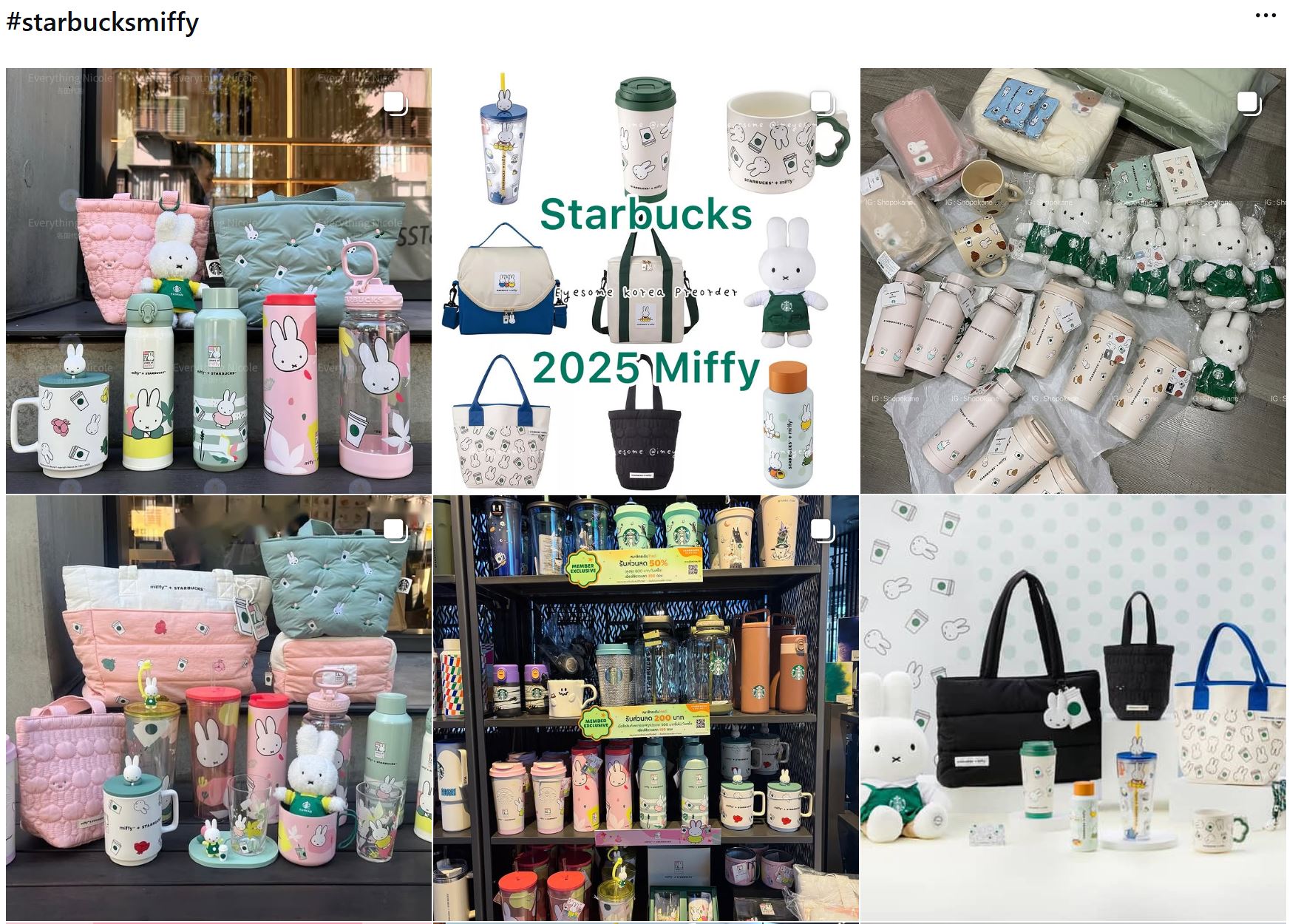 星巴克咖啡曾與米飛兔聯名推出托特包、杯具與玩偶等商品,雖確實引發收藏熱潮,但缺乏參與感,而未引起熱潮。(圖片來源:Instagram截圖)