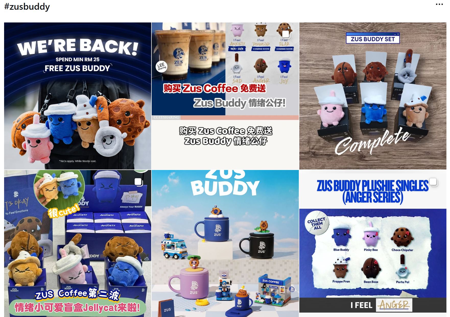 ZUS Coffee推出的ZUS Buddy系列,儘管因為新鮮感而吸引人流,卻同樣缺乏沉浸式體驗,難以在社群上引發效應。(圖片來源:Instagram截圖)