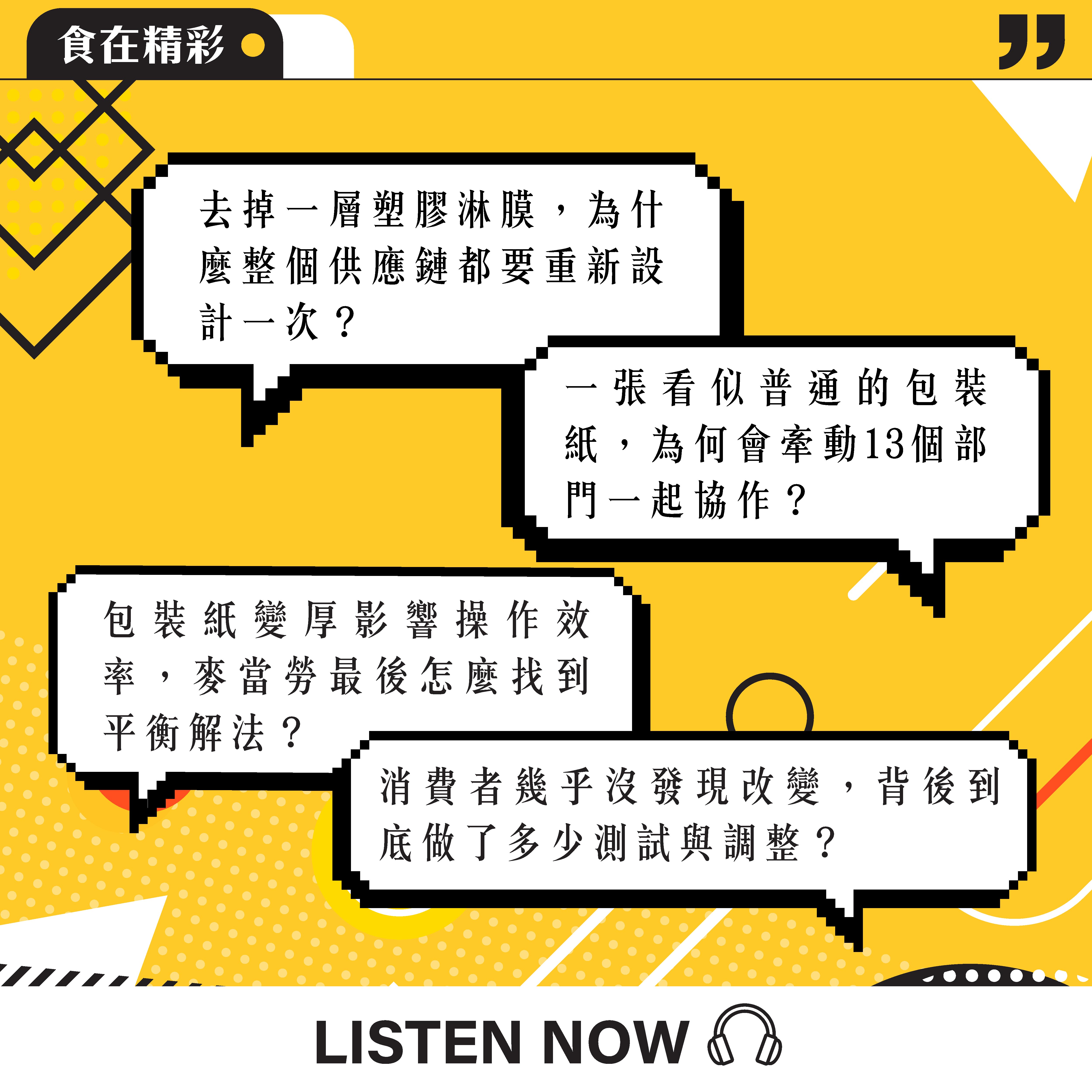 你最近吃麥當勞,有發現包裝變了嗎?手不會更油、食物也沒有變難吃,但其實一個關鍵改變已經發生:包裝紙裡的塑膠淋膜消失了。本集帶你從一張紙看見背後的故事:從材料測試、門市操作到供應鏈協作,為什麼這個看似簡單的改變,花了3年才完成?