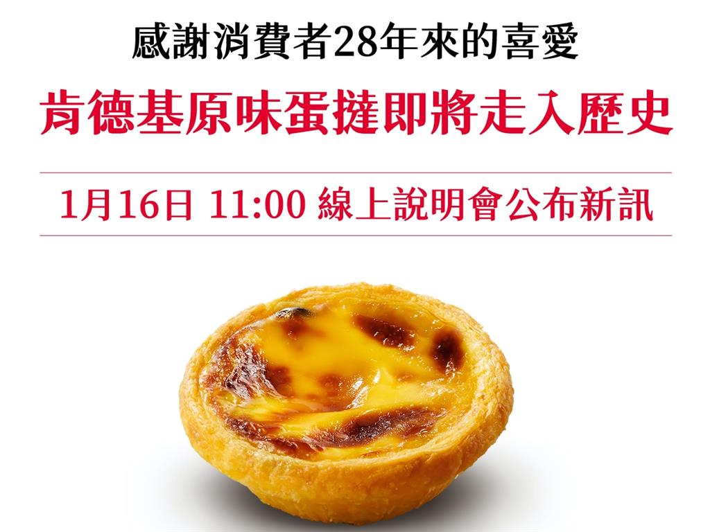 上圖為2026年1月15日肯德基發出「原味蛋撻即將正式走入歷史」的公告,下圖為1月16日則宣告新的「原味蛋撻-超極酥」上市。(圖片來源:肯德基臉書粉絲專頁)