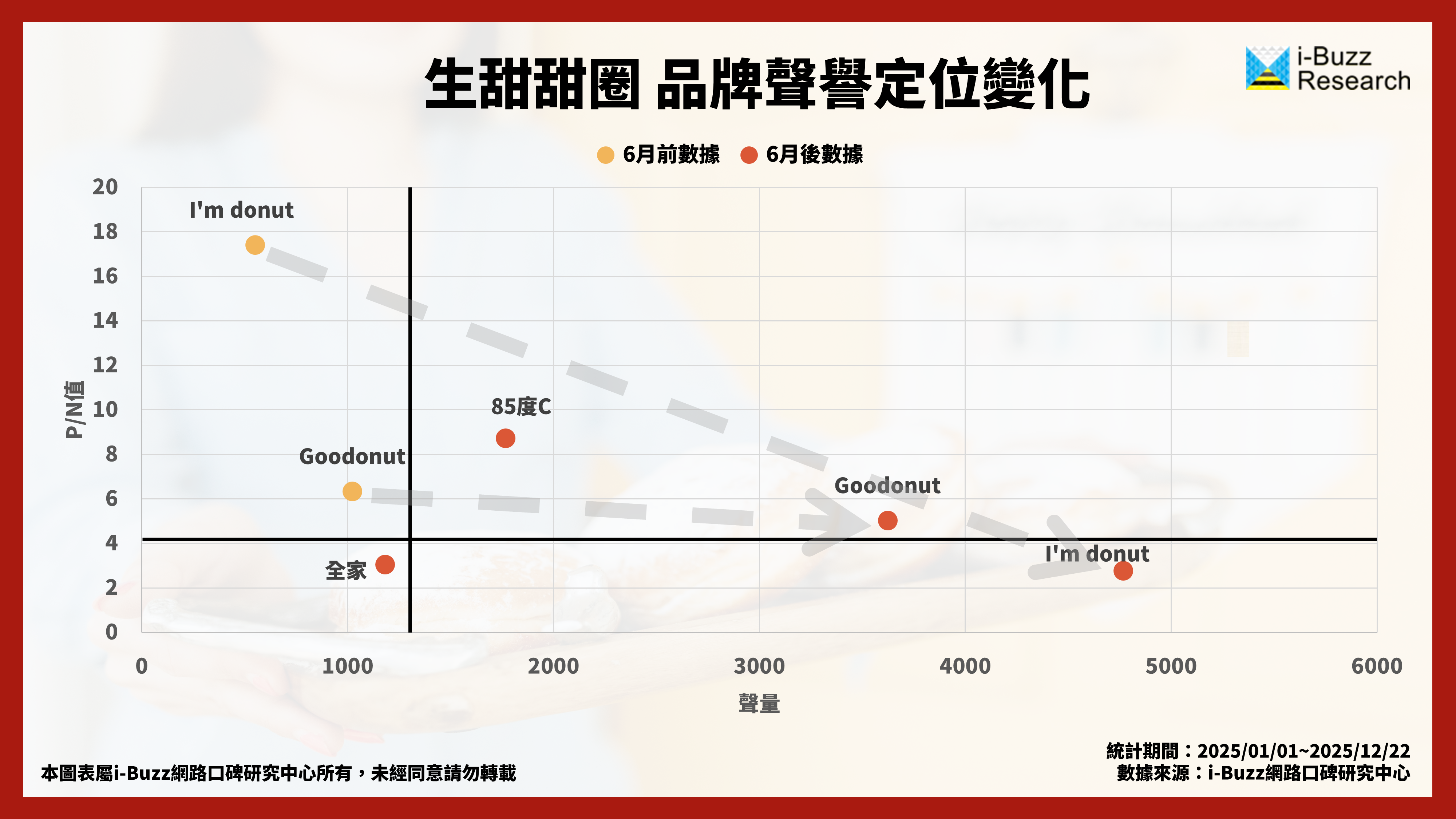 相較之下,Goodonut 在同樣面臨排隊壓力的情況下,因為清楚的限購機制與積極回應消費者意見,反而逐步拉升自身的 P/N 值,成功將討論轉化為品牌信任;而連鎖通路如全家,雖在推出生甜甜圈後迅速累積聲量,但因口感評價分歧,其 P/N 值表現相對保守,由此可知「進場快」並不等於「好感度高」。