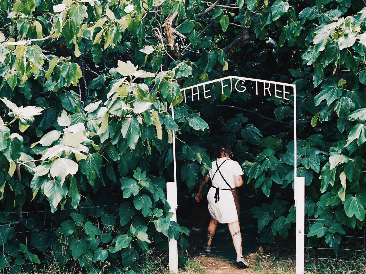 嚴格來說,這棵無花果樹的樹冠層茂密地朝下生長至地面,完整地包圍著桌椅和客人;光影在樹葉間投下的斑駁成了最天然又美幻的燈彩,其碩大和妙不可言的姿態,使「樹篷」內的每一個人安靜並且敬畏自然的偉大。由此可知,此無花果樹的狀態徹底左右The Fig Tree餐廳的成敗。廚房團隊和客人必須耐心等過4月復活節果實累累的繁忙,漫長冬季的落葉結束,10月中旬的開枝散葉,一直到11月中旬嫩葉轉成蔥鬱足以成蔭,才能正式提供悠閒如晝寢的午餐時光。