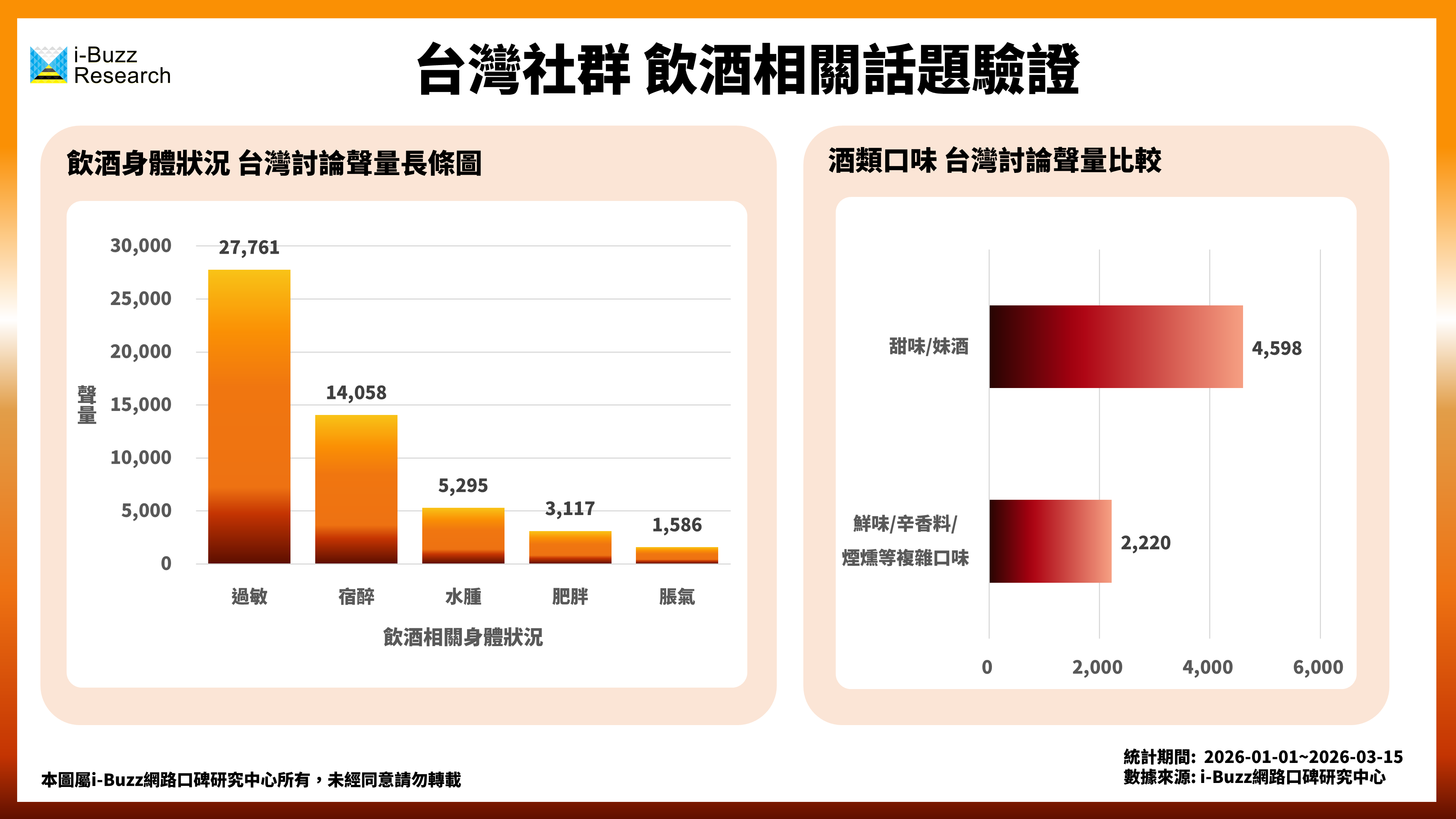 上文提及的研究,係透過分析超過840萬則「美國烈酒與利口酒」相關社群貼文,歸納出上述飲酒行為變化,其資料主要來自TikTok、Reddit、Instagram、Pinterest等主流社群平台。那麼,在台灣市場中,是否也呈現出相似的趨勢?為了驗證這一點,我們進一步透過i-Buzz VOC+系統,蒐集與飲酒相關的關鍵字聲量,從在地網路口碑切入進行比對分析。