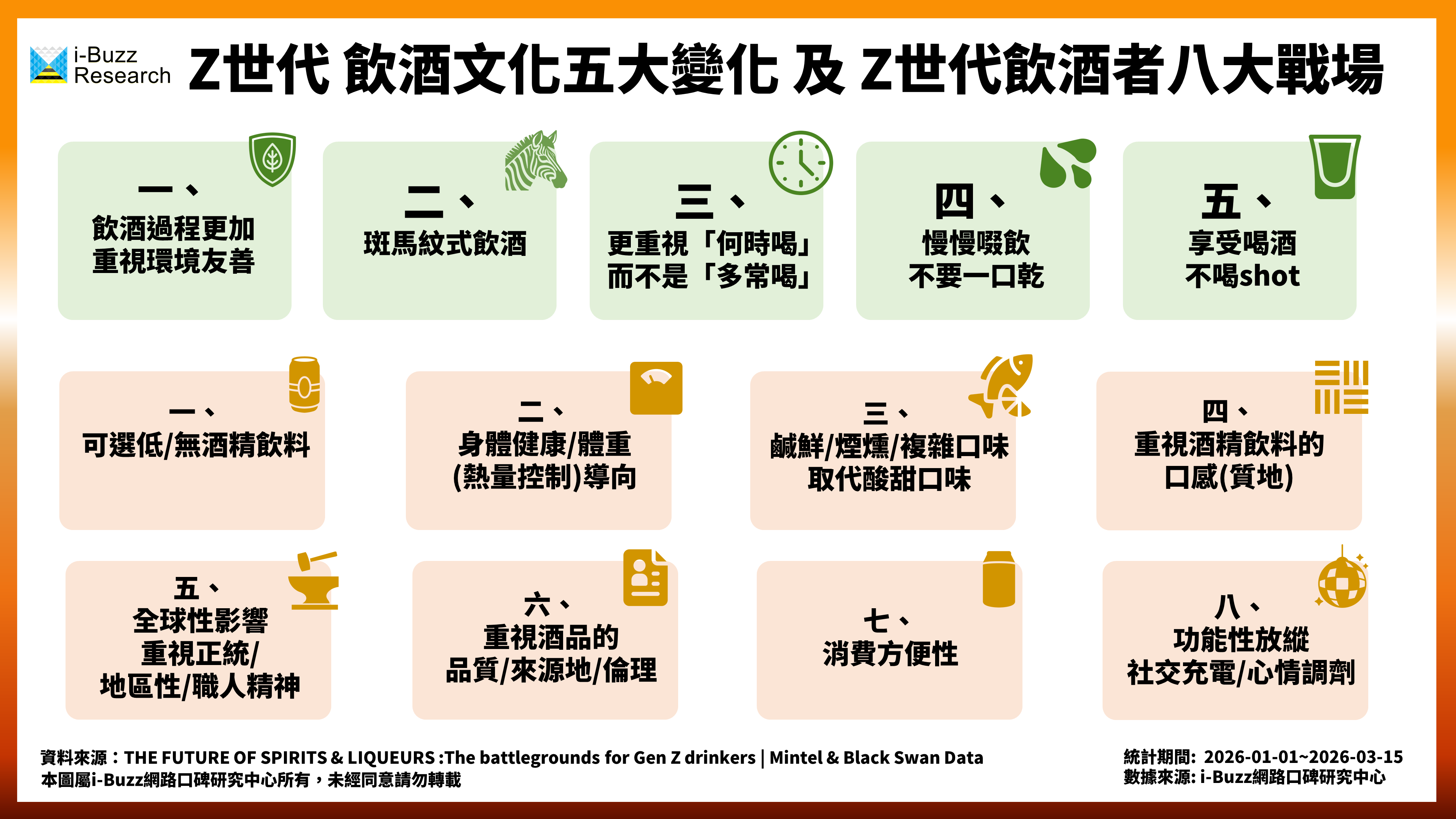 【本文獲i-Buzz網路口碑研究中心授權刊登,原文標題:從「拼酒文化」到「微醺管理」:Z 世代如何重塑全球烈酒市場與台灣飲酒邏輯】