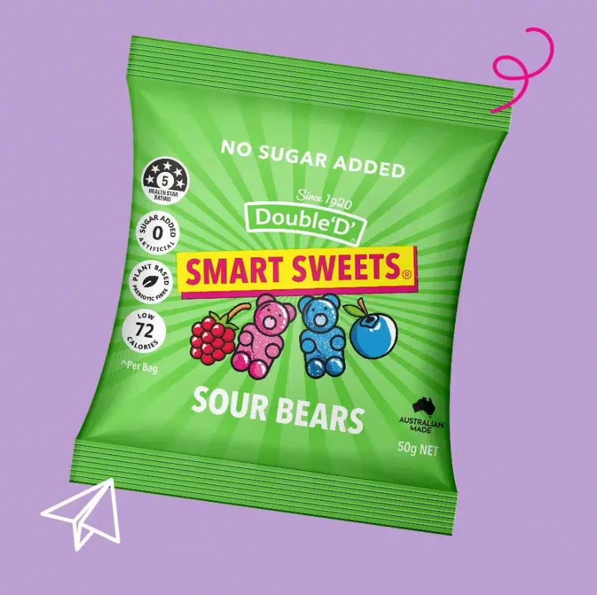 例如,Double 'D在澳洲市場推出的Smart Sweets Sour Bears軟糖,是一款定位「健康縱享」的低糖軟糖產品。主打「無添加糖」與「高纖維」,每袋淨糖僅約3g。該軟糖採用可溶性膳食纖維、天然甜味劑及植物基配料製成,不含麩質,適合素食者。