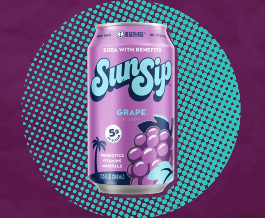 Health-Ade推出的SunSip葡萄口味益生元蘇打水新品,是一款兼具氣泡飲清爽感與功能性健康價值的產品。(圖片來源:Innova市場諮詢公司提供)