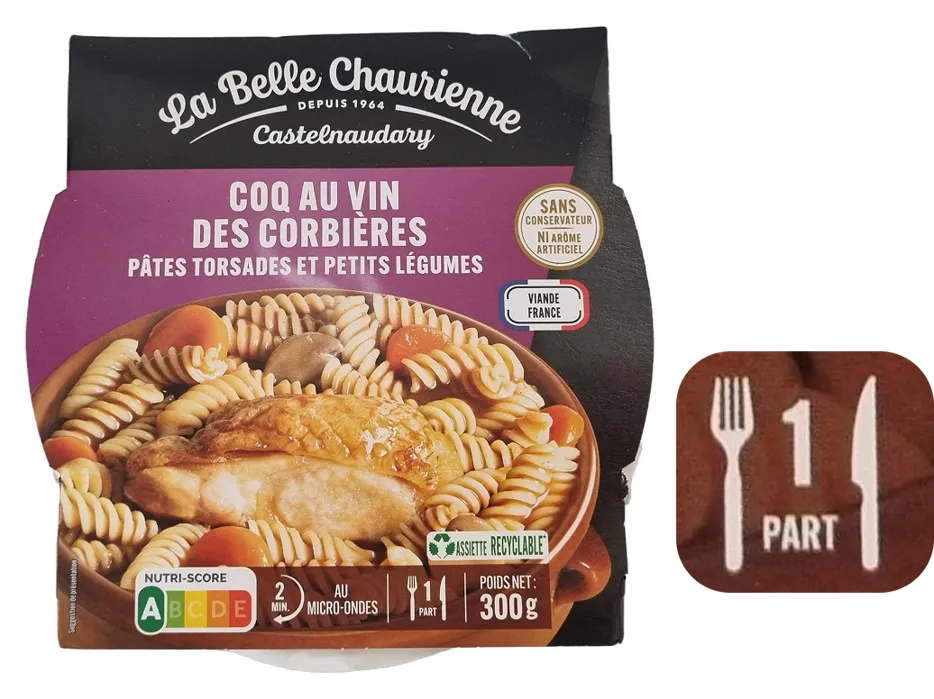 例如,品牌La Belle Chaurienne在法國推出的一人份即食餐新品「科爾比埃紅酒雞配螺旋意麵與時蔬」,主打將法式經典菜餚「Coq au Vin」與即食意麵+蔬菜結合,在包裝上標註「1 PART」,凸顯單人份量,適合忙碌工作日午餐或晚餐快速加熱享用。