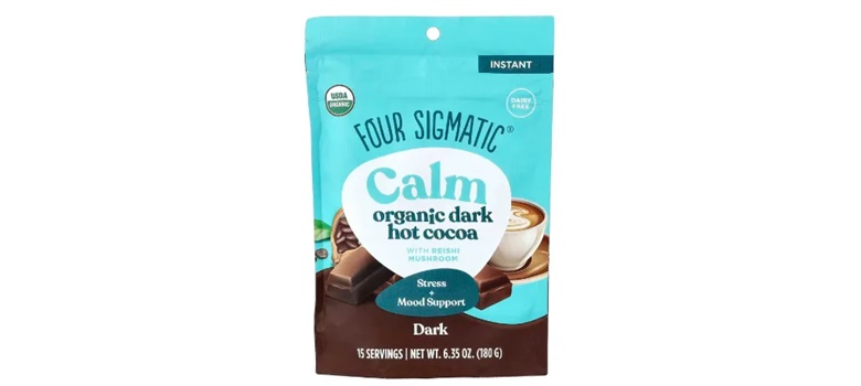 例如,Four Sigmatic在美國推出的「Calm有機黑可可粉」,主打「緩解壓力、情緒支持」。該產品以有機黑可可為基底,加入靈芝等適應原菇類成分,不含乳製品,並符合有機認證。適用於放鬆心情、舒緩壓力或提升情緒的日常飲用。