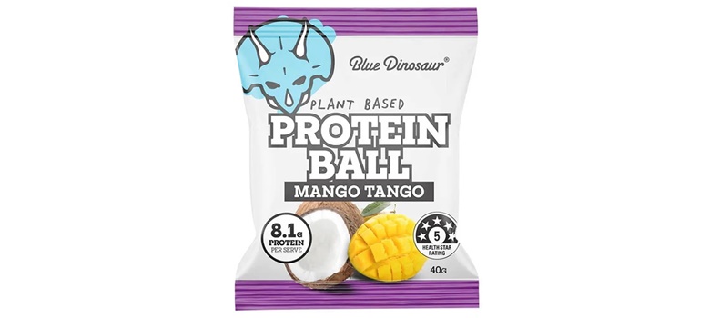 例如,品牌Blue Dinosaur在澳洲推出的「芒果探戈植物基蛋白球」,宣稱是一款專為運動後補能或午後提神設計的功能性零食。每份含8.1克蛋白質,採用植物蛋白與真實芒果、鳳梨、椰子果料融合製作,不含人工甜味劑或人工色素。