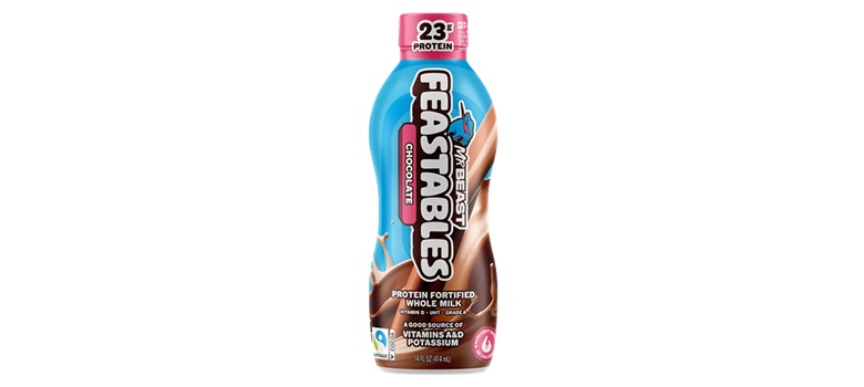 Feastables在美國市場推出的蛋白強化全脂巧克力牛奶,採用公平貿易認證可可,強調負責任與道德採購。(圖片來源:Innova市場諮詢公司提供)