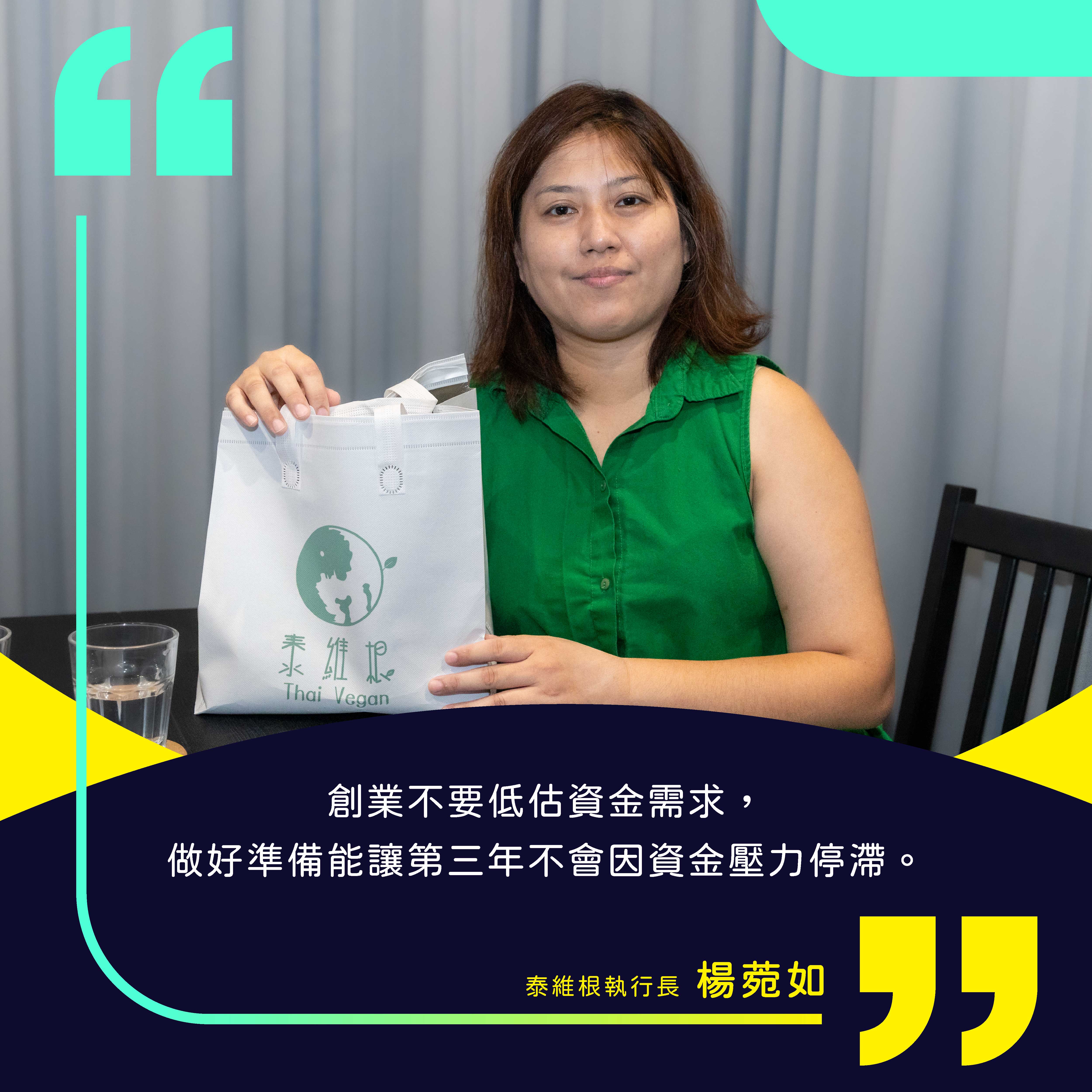 泰維根於2022年疫情期間成立,主打泰式蔬食冷凍調理食品,並以正宗泰國香料為特色,產品包括綠咖哩、打拋肉與酸辣湯等。執行長楊菀如分享,品牌以B2B餐廳端為核心策略,並延伸C端產品,近期更推出綠咖哩冰淇淋與循環經濟的泰式鍋底醬。隨著台灣蔬食市場成長與東南亞拓展計畫,泰維根正走向「泰式料理 × 蔬食 × 永續」的跨國發展之路。