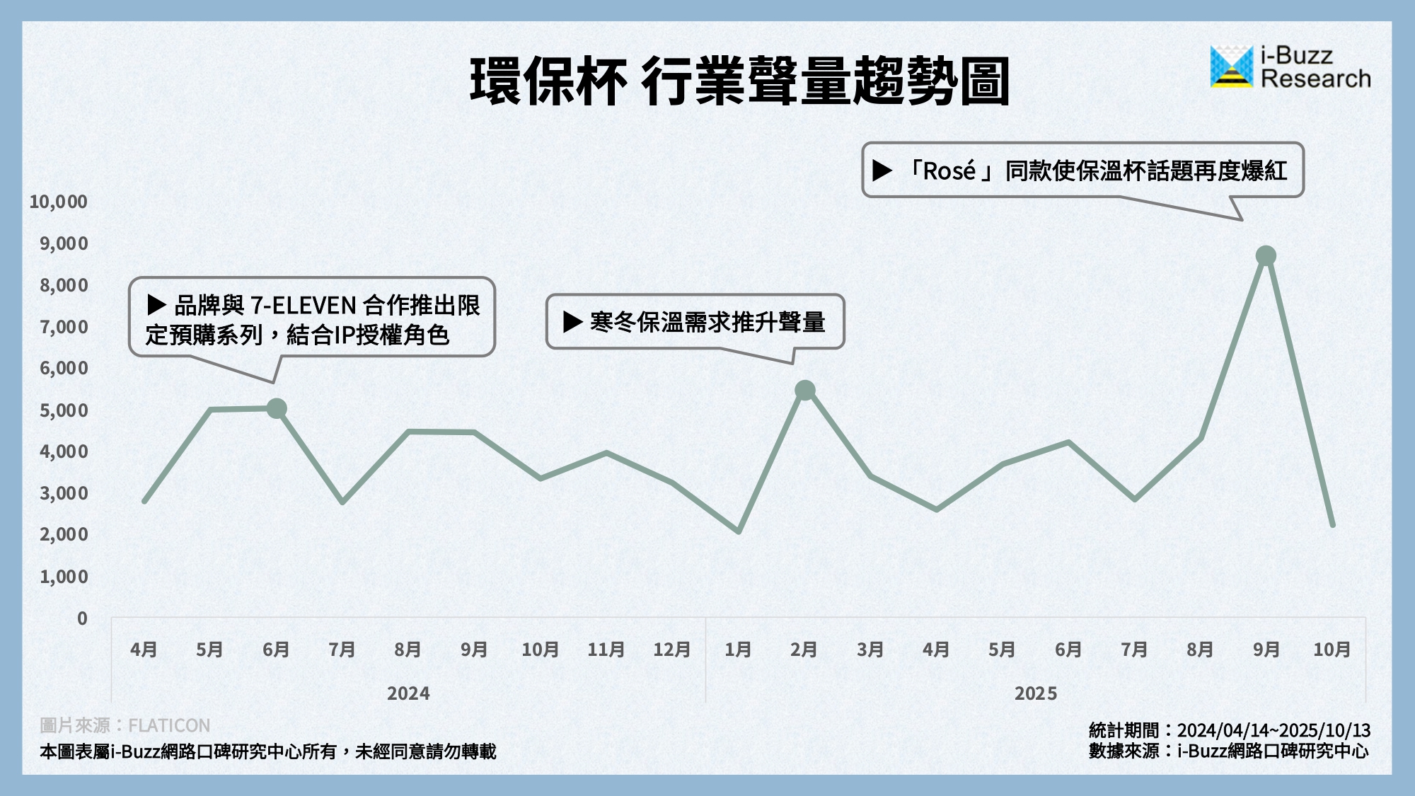 2025年9月是環保杯品牌的聲量高峰,韓國大勢女團BLACKPINK的Rosé帶著黑色環保杯時尚入鏡,「Rosé同款」也成為該月的重量級話題,許多網友高呼「好燒」、「想加」,都顯示明星帶貨對社群到底有多大的影響力。韓國Starbucks也馬上與該品牌推出限量聯名款。然而,品牌關注度攀高的同時,也出現「假貨辨識」的問題,Threads上也有許多網友提醒不要為了跟風或撿便宜買到了仿品。