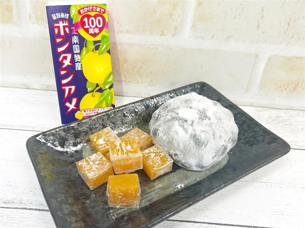 先說一下文旦糖是什麼:文旦糖(ボンタンアメ)是日本鹿兒島「セイカ食品」自1925年生產的老字號經典糖果,2025年正好迎來100週年,在日本老一輩人心中有特殊地位。主要原料是水飴、砂糖、糯米粉(もち粉),外面包著一層可以直接吃的澱粉薄膜(オブラート,類似威化紙)。口感軟糯近似麻糬,帶有南國文旦(ボンタン)的清香。一盒14粒,小小一盒非常好攜帶。