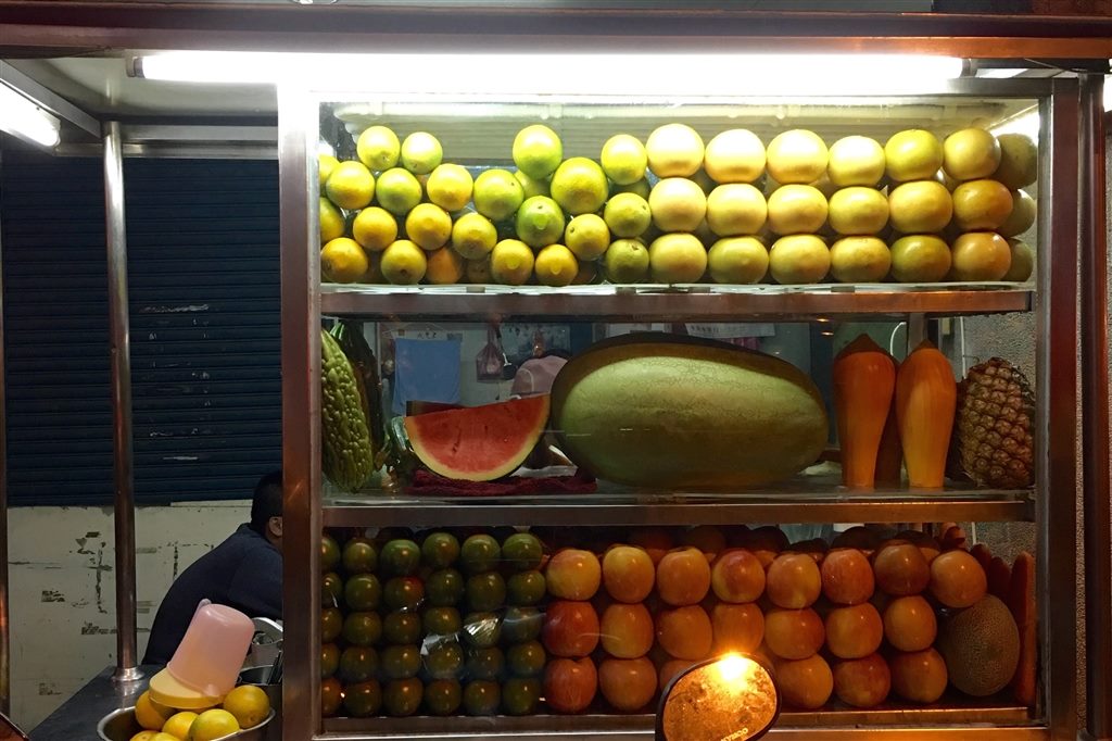 逛市集與夜市的時候,果汁攤販常常是生意最好的那攤。台灣是水果王國,各式各樣的組合苦甜酸鮮搭配,十足吸引人。小販通常把切好的蔬果,大剌剌放在路邊的保鮮盒裡展示,一方面看到切開的水果橘紅柳綠,讓人食指大動,一方面現場打成果汁,更是標榜新鮮的方式。