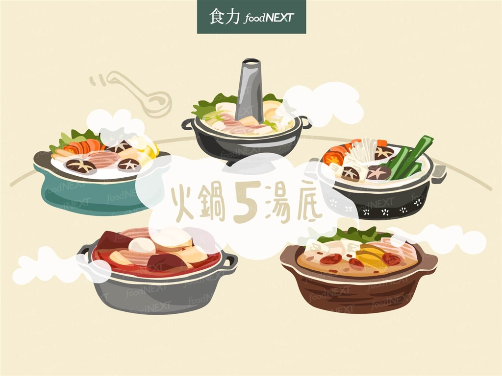 市面上常見的五種鍋底,風味各有不同,開鍋選擇前,除了挑美味之外,如果將營養成分多考量一下,單純以新鮮食材熬煮的鍋底一定比香辣濃郁的湯頭來得健康。