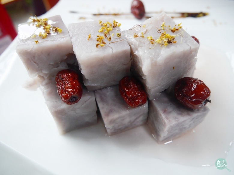 Step 3開大火煮開,改小火煮 20 分鐘(用一只瓷盤壓在上面,讓所有芋頭都能泡在糖水中),再移開,待涼後泡2小時即可。