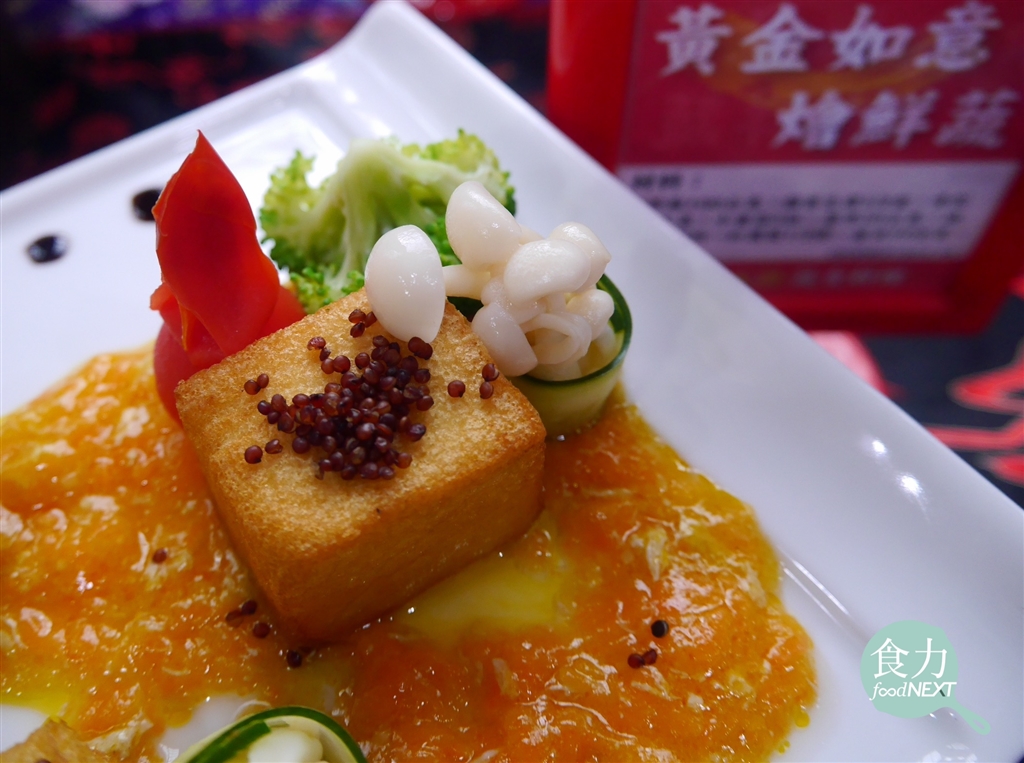 Step 2雞蛋豆腐切大塊,平底鍋煎至金黃色備用。