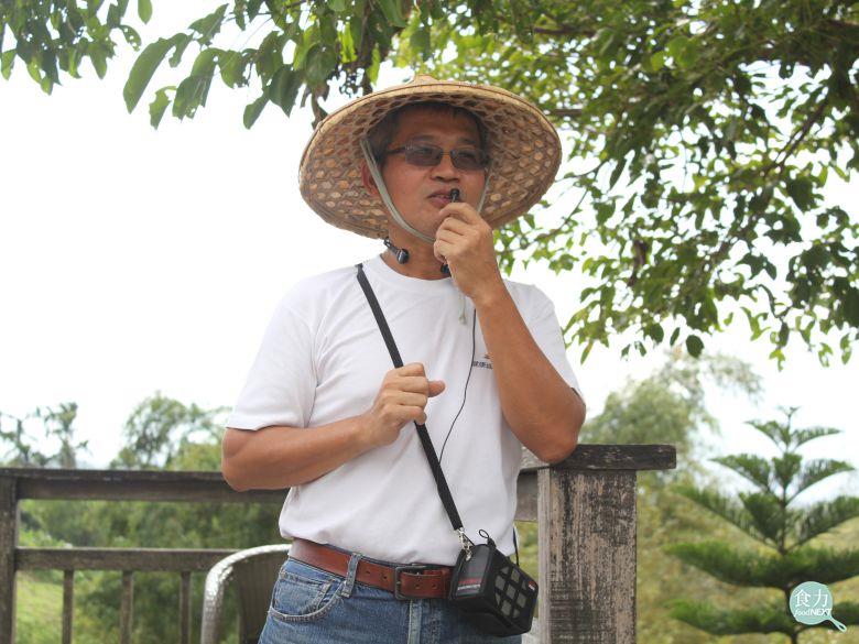 圖2大自然體驗農家負責人林益誠為遊客示範石磨的操作方法