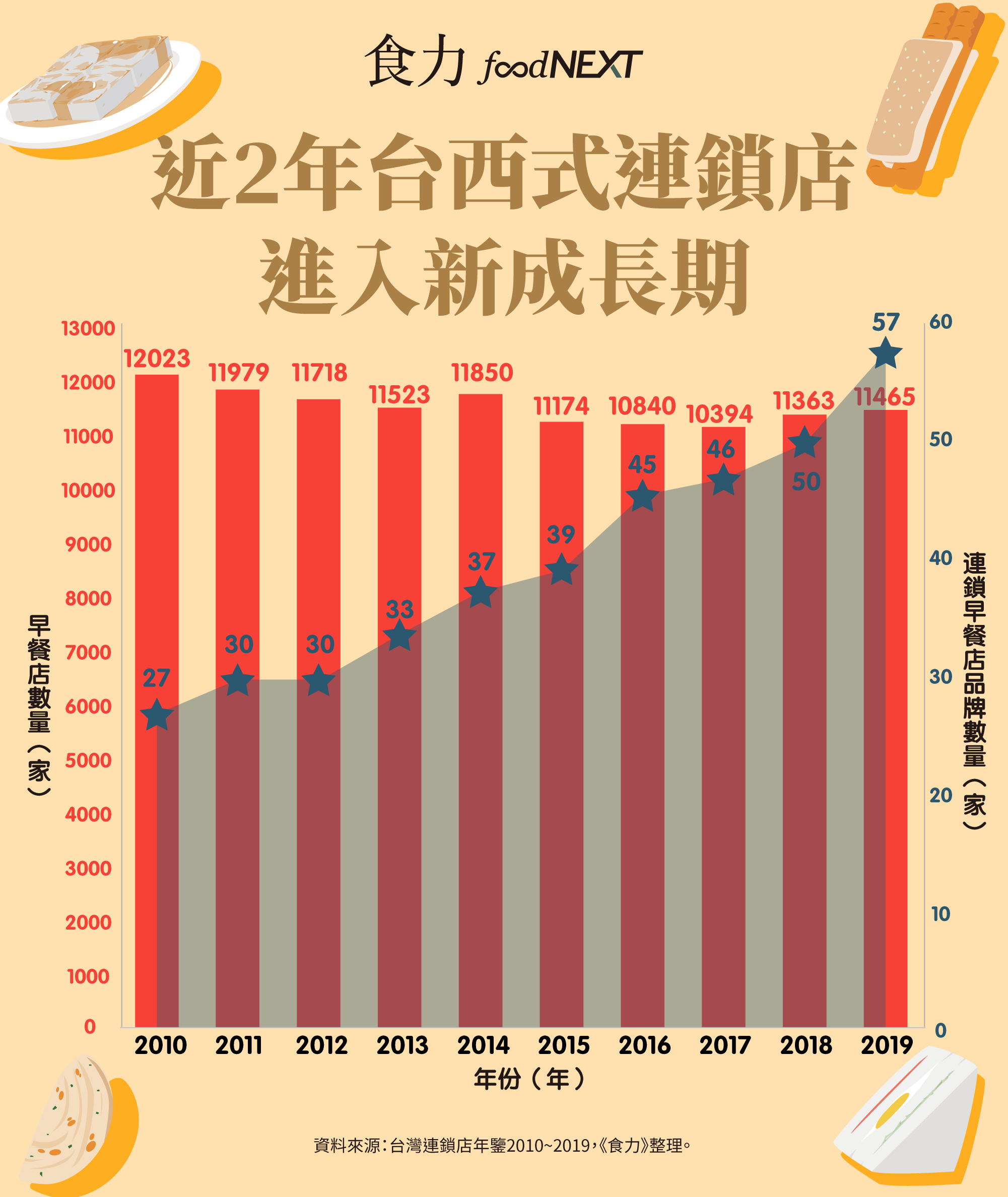 (表1)西式連鎖早餐店品牌擴增,2019年進入新成長期!