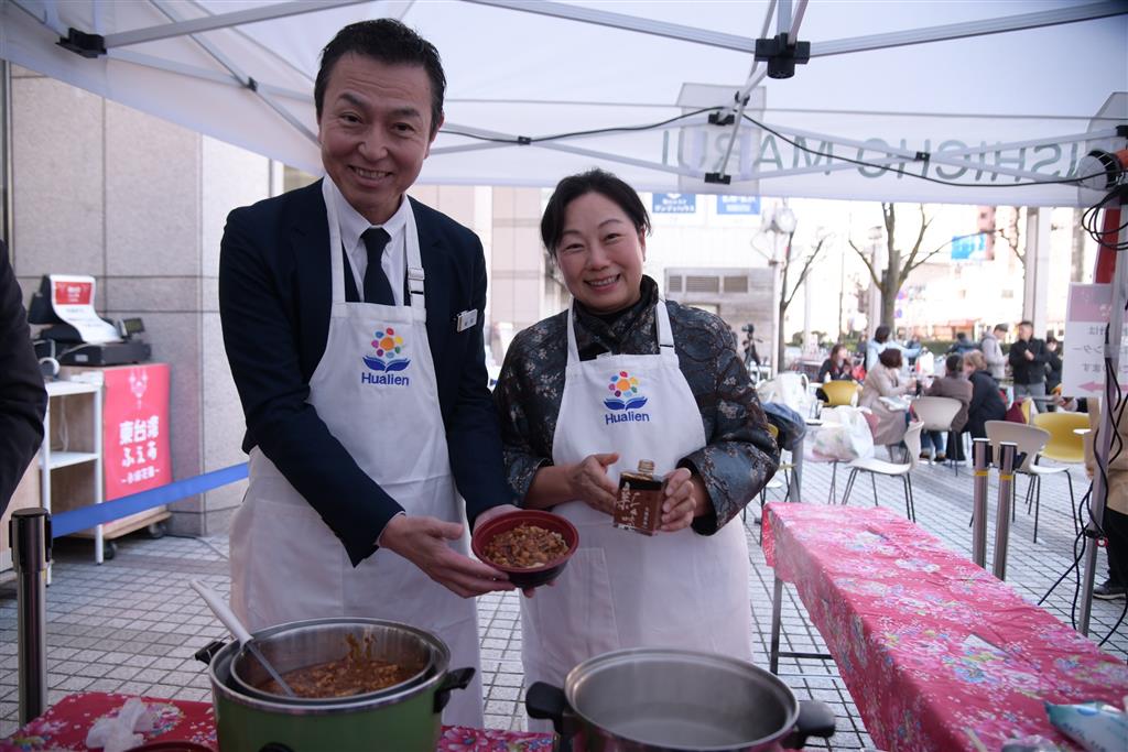 會中,徐榛蔚致贈來自花蓮台灣玉所製成的「玉見台灣」石版畫予山本亨,以表示雙邊友好之誼,並親自與丸井百貨店長城所宏政合力使用花蓮在地醬油烹煮美味肉燥麵,香醇的好味道令現場眾人食慾大開。