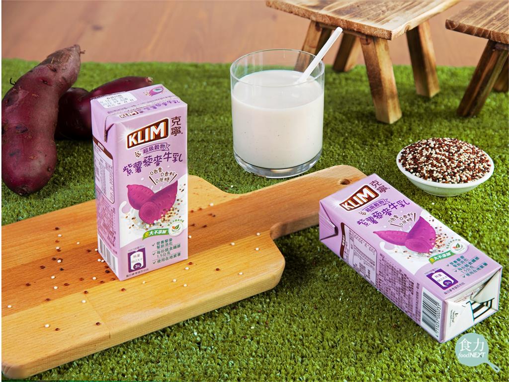 克寧新產品紫薯藜麥牛乳,不甜的清新好味道,冷熱都可品嚐,大人、小孩都愛喝。(張偉明 攝)