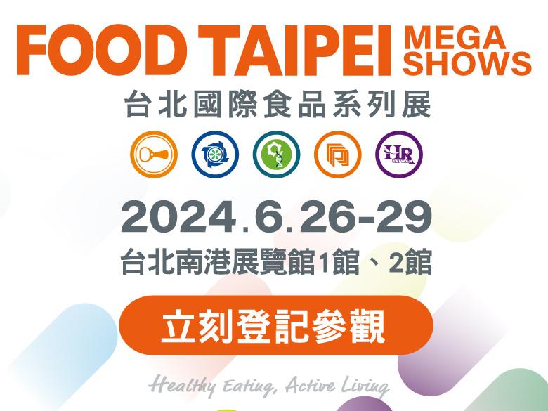 結合「台北國際食品展」、「台北國際食品加工機械展」、「臺灣國際生技製藥設備展」、「台北國際包裝工業展」及「台灣國際飯店暨餐飲設備用品」五展的台北國際食品系列展(Food Taipei Mega Shows),將於2024年6月26~29日在南港展覽1、2館同期展出,展覽設備類別豐富,涵蓋前後段包裝、包裝設計/印刷、環保包材、食品加工機械、工廠/實驗室設備、飯店暨餐飲業設備、消毒設備、冷鏈設備等,提供全方位B2B完整供應鏈,是一站式專業採購平台,更是進入國際市場的重要管道。