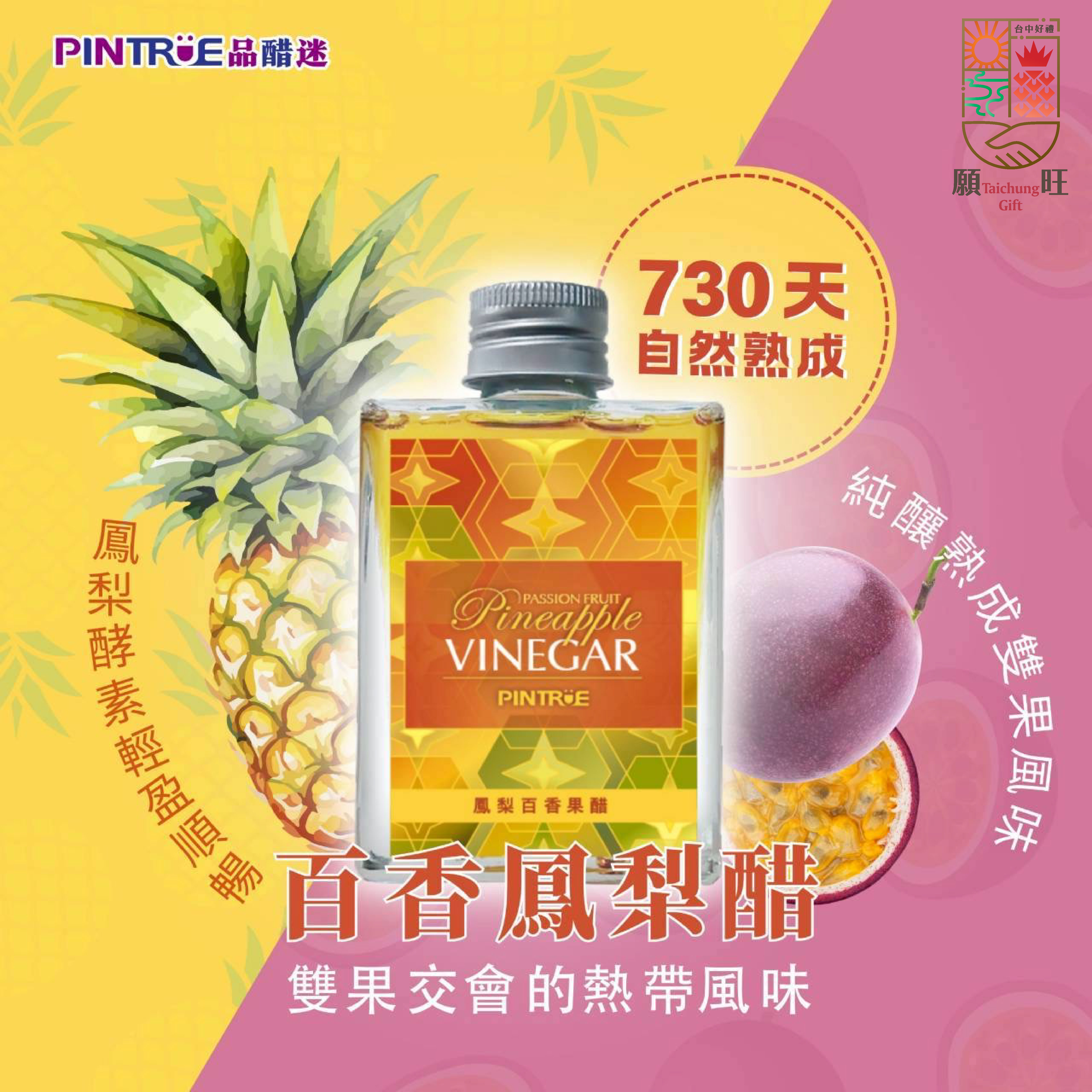 近期主打的百香鳳梨醋,是與願旺聯合品牌計畫合作推出,以在地鳳梨開發產品成為主題而來。為了讓風味更佳,陳宥緁以品酒師專業的敏銳味蕾,將分別釀製的百香果醋與鳳梨醋,調配出最佳比例風味。她希望透過加入香氣較高的百香果,調整鳳梨醋單純發酵時可能過於濃重且不夠清新的口感,創造出個性很不一樣、有別於市場其他多果果醋的產品。