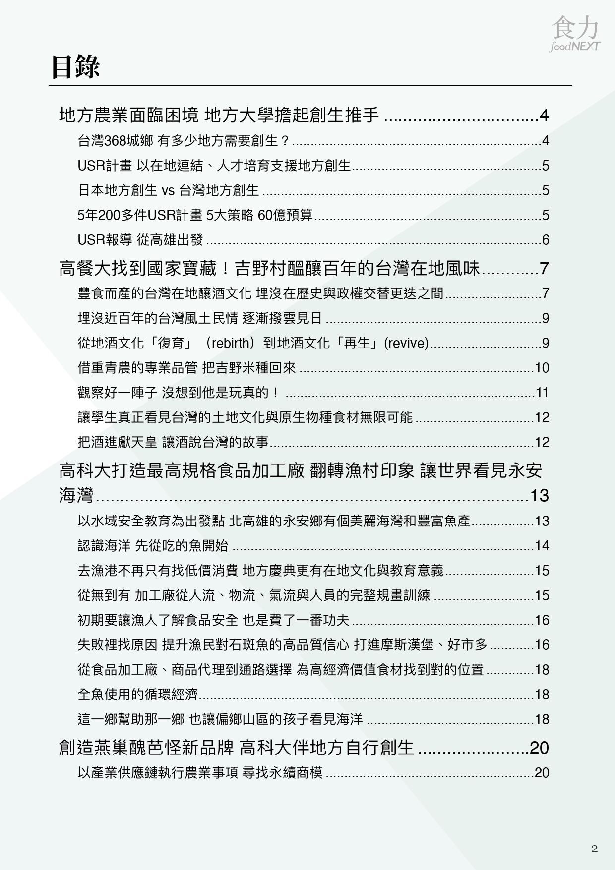 回列表 【電子雜誌】食在有幫助 USR在高雄 大學社會責任(USR)越來越受重視,台灣面臨少子化、高齡化,城鄉勞動力人口分佈不均,從在地食農與漁牧議題出發,觀察在地問題,並透過人文關懷協助解決區域問題,高雄的在地大學與地方媒合了哪些人、做了哪些事? 需要10學分 我要兌換下載