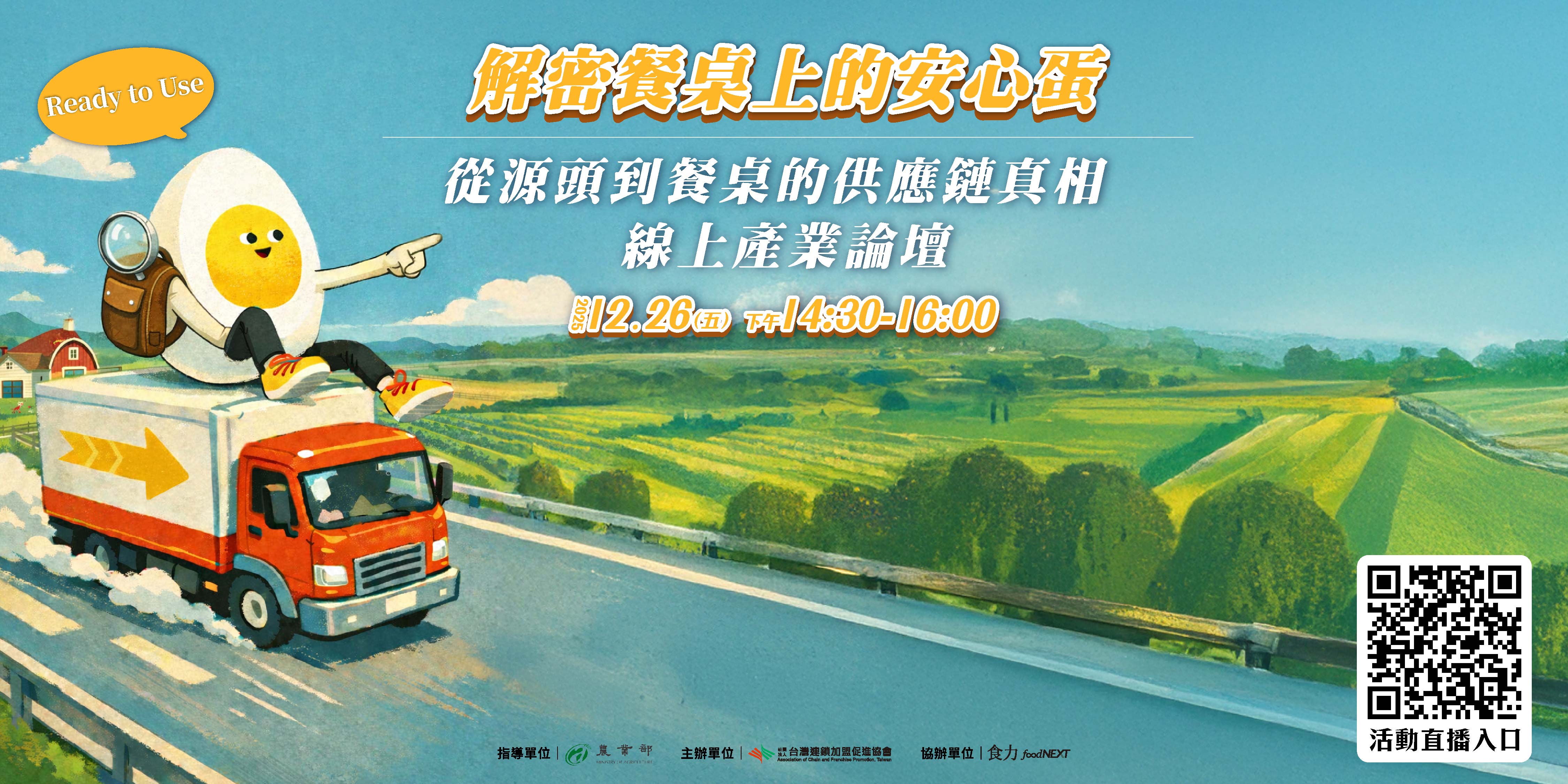 由農業部指導、社團法人臺灣連鎖加盟促進協會主辦、食力foodNEXT協辦的線上產業論壇【解密餐桌上的安心蛋|從源頭到餐桌的供應鏈真相】,集結雞蛋供應鏈中四大關鍵角色——生產端、洗選端、零售通路端與餐飲品牌端,從不同視角深入剖析雞蛋產業。透過系統性梳理,將這項高度日常、卻也高度敏感的食材,全方位、有脈絡地說清楚,協助建立消費者對「洗選蛋」與「安心蛋」的正確認知。