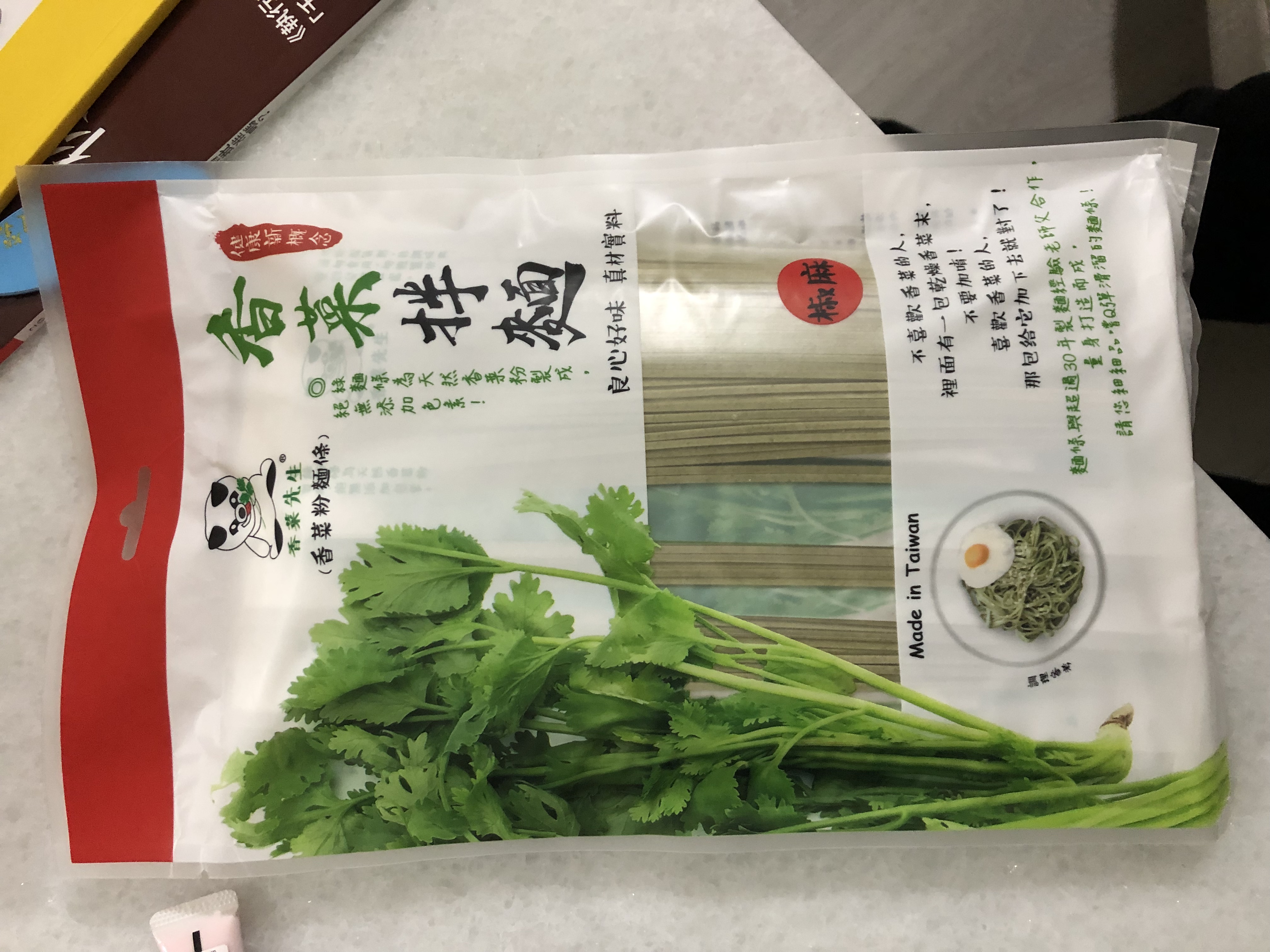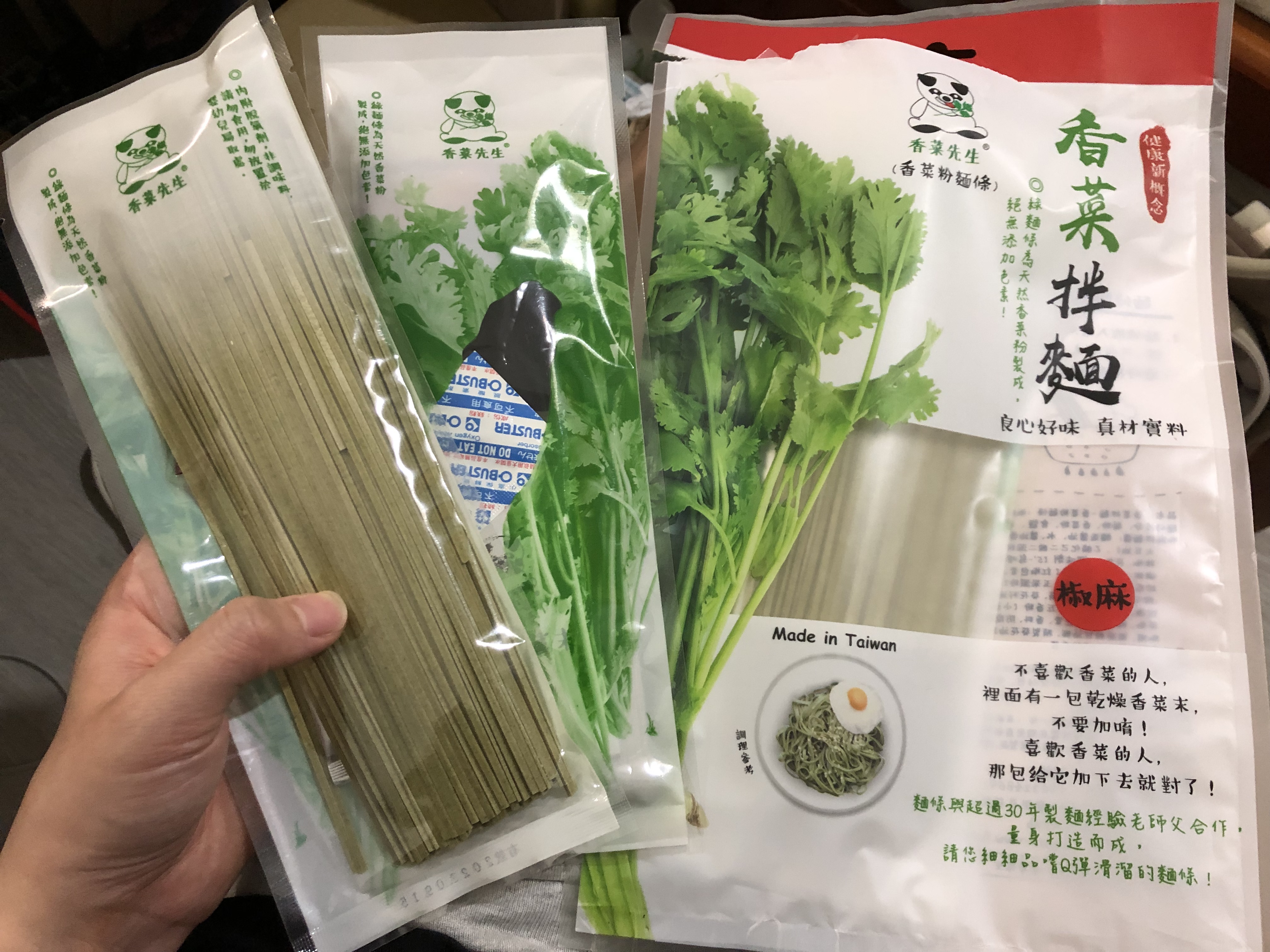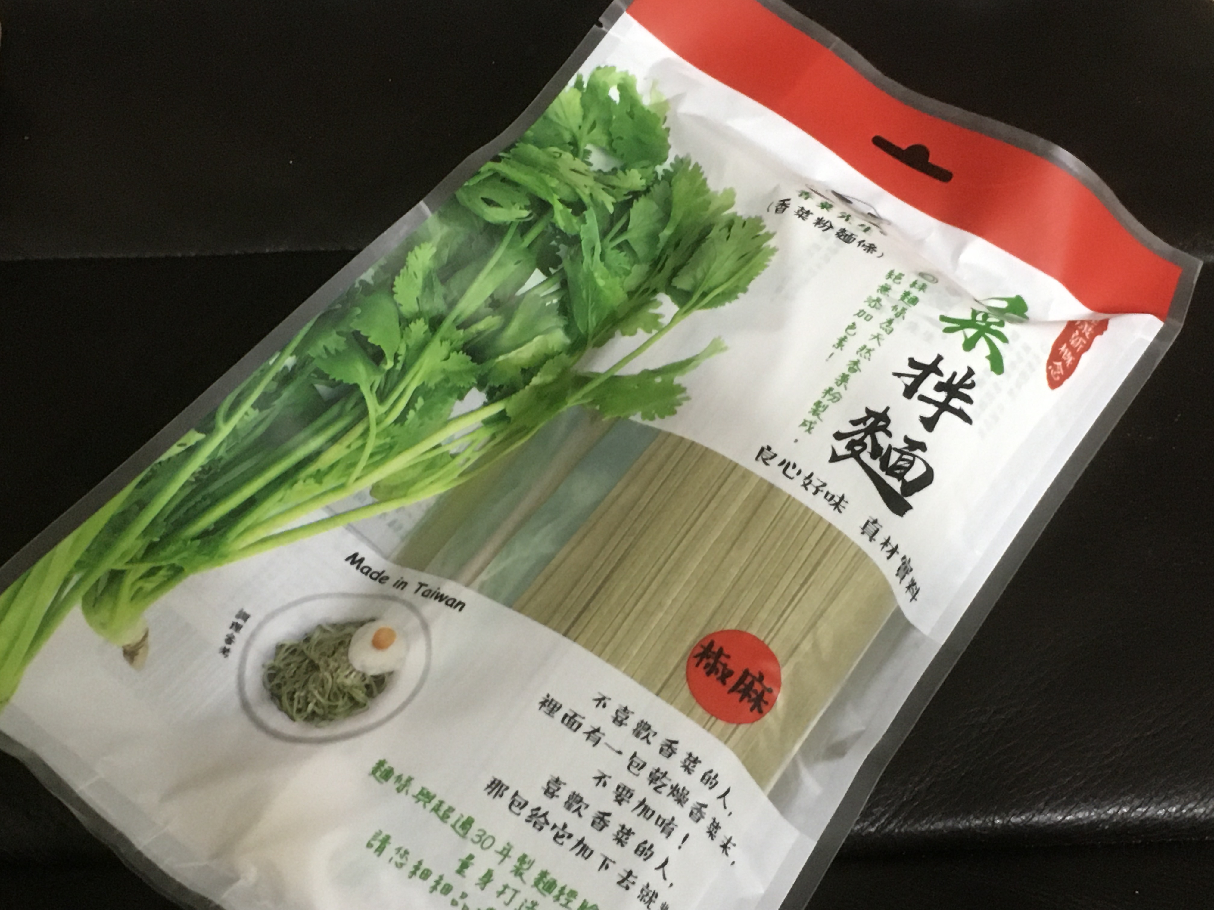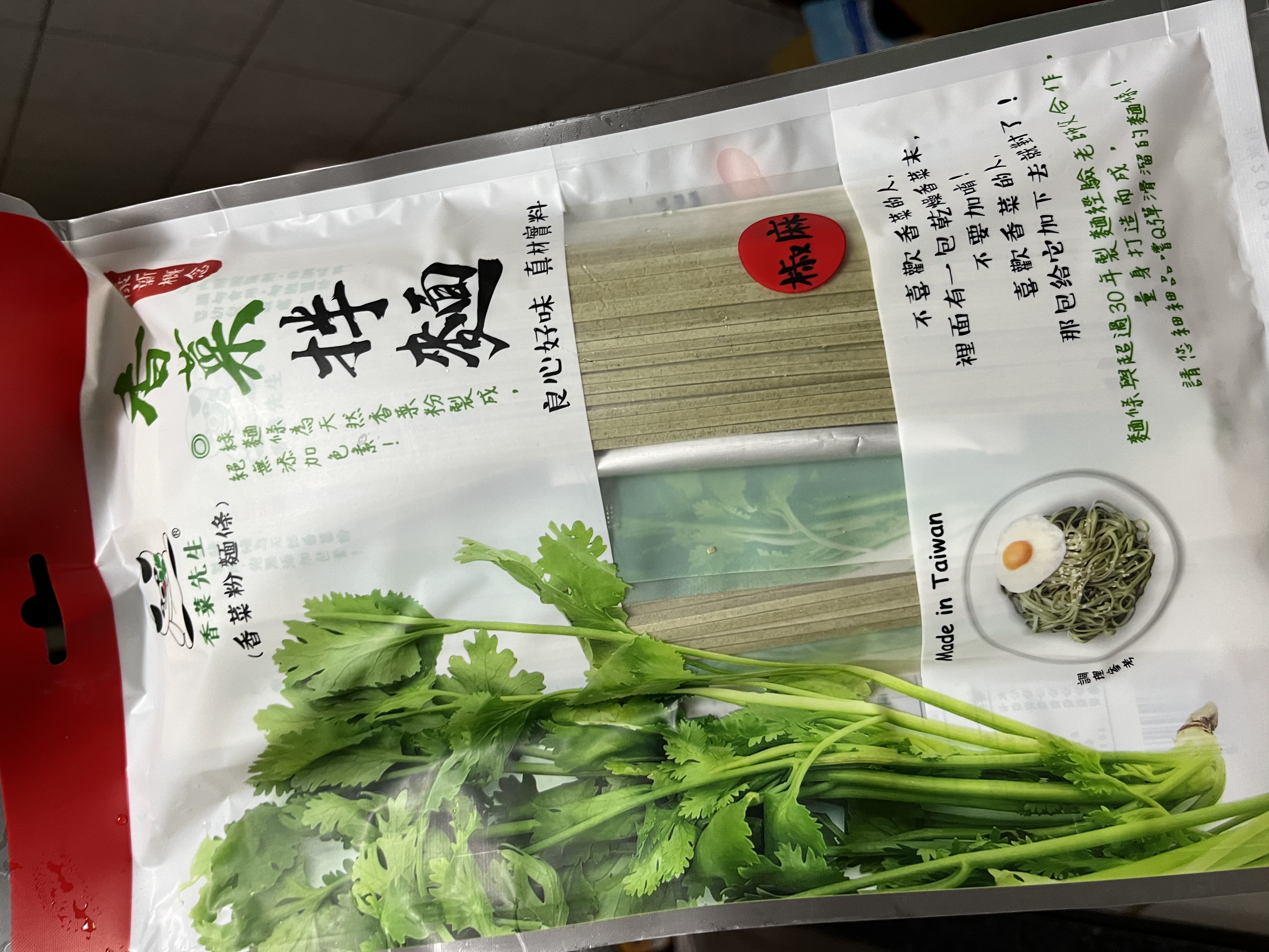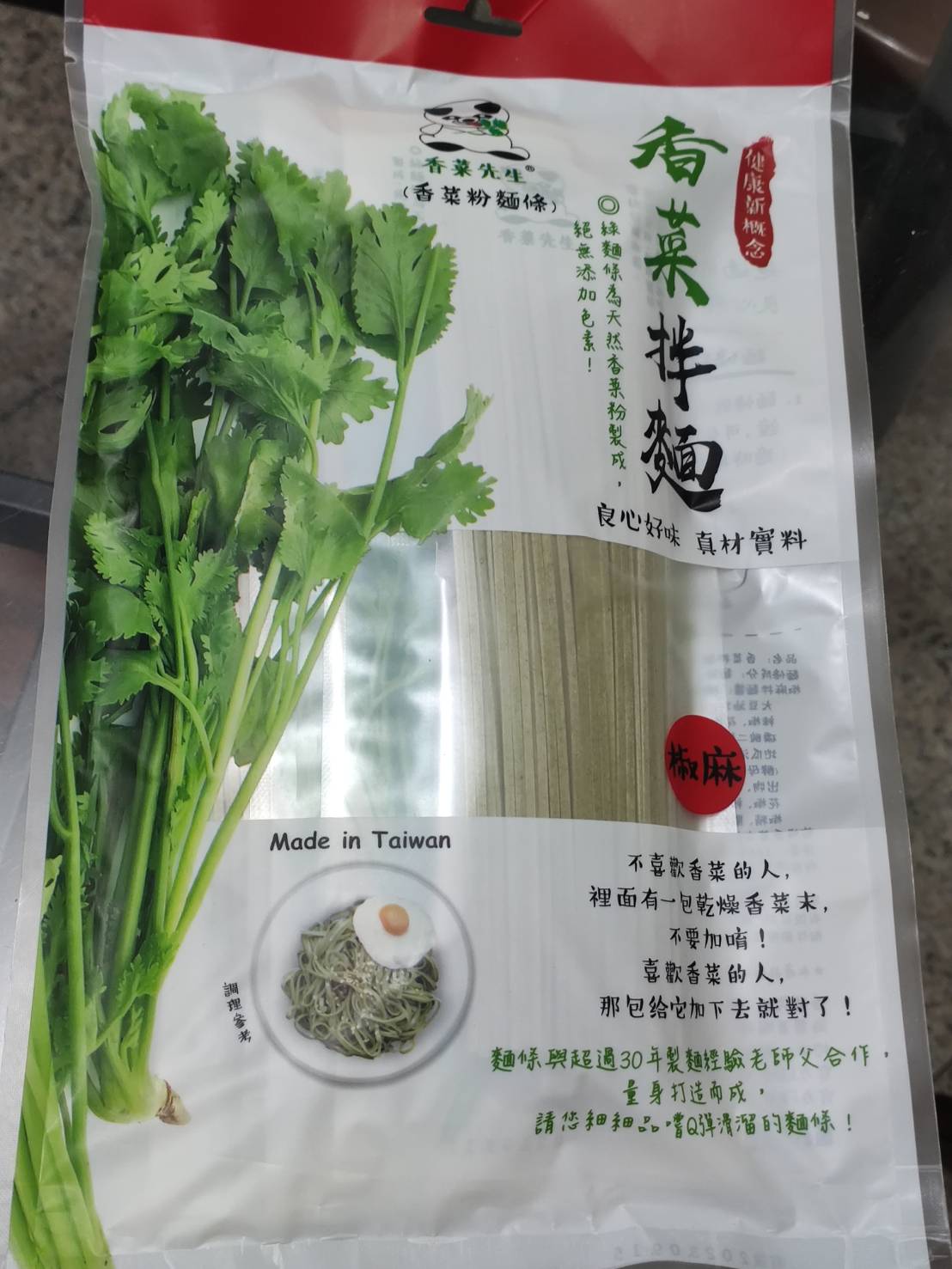 麵條成分:香菜粉、麵粉、食鹽、水。乾燥香菜末包:台灣純香菜。
