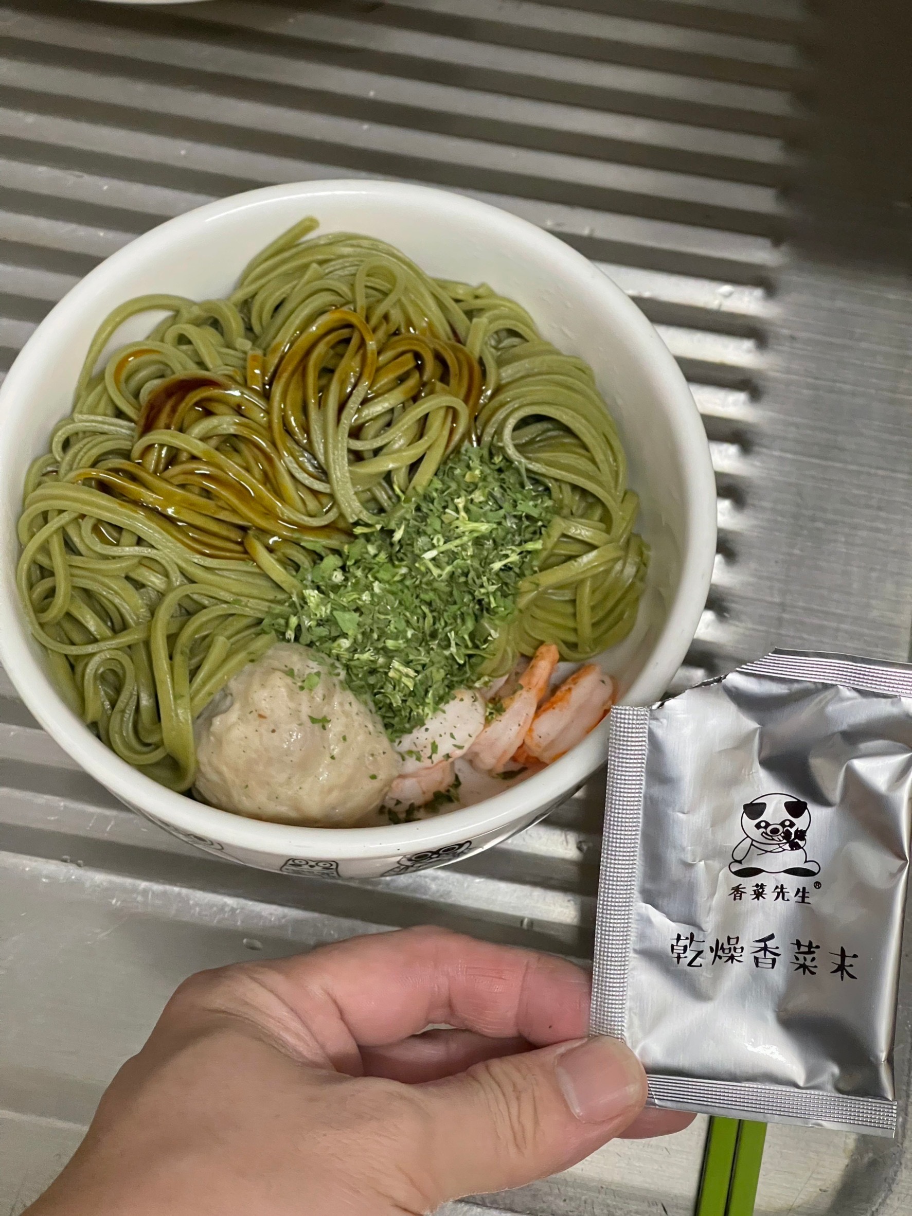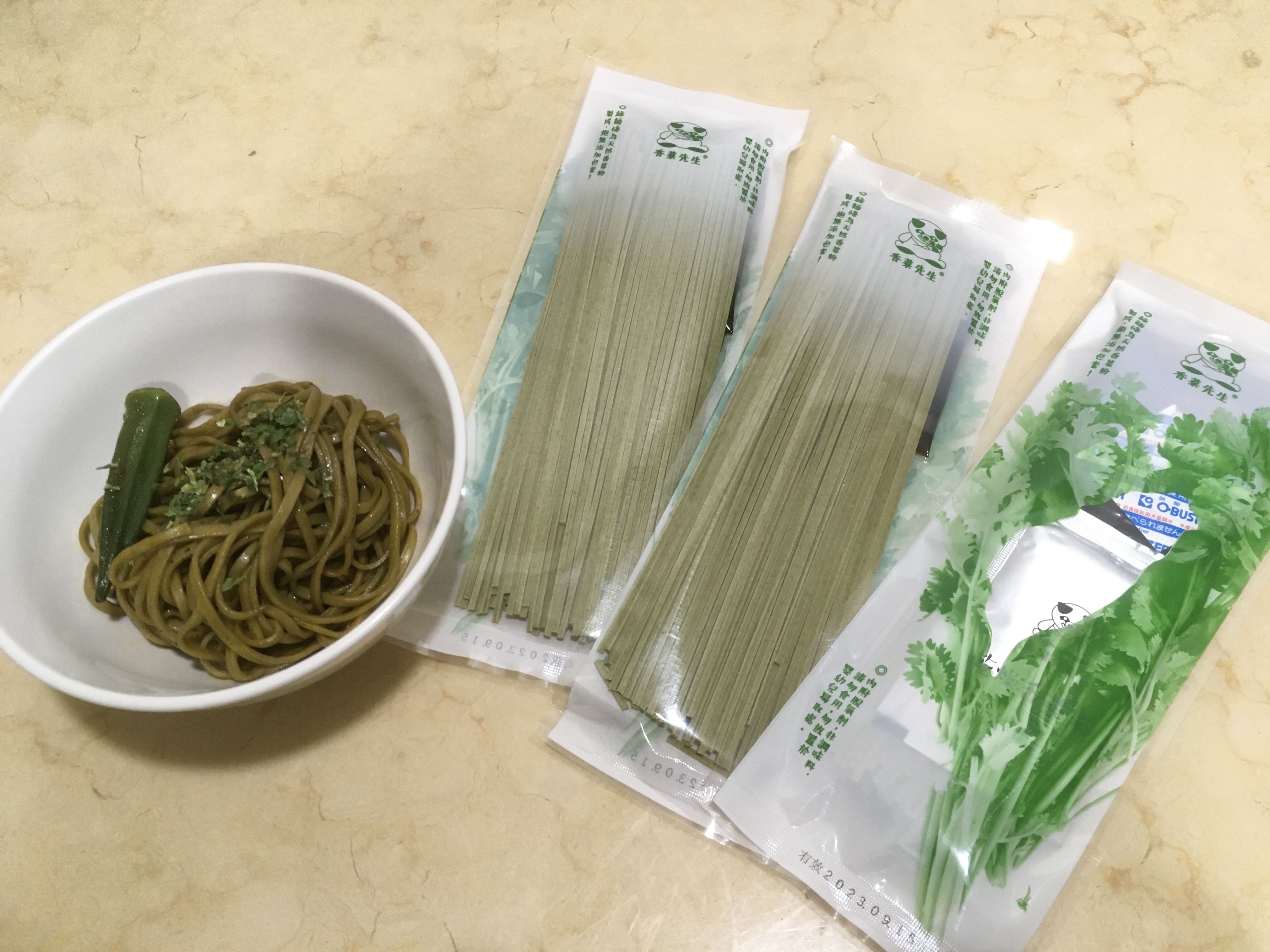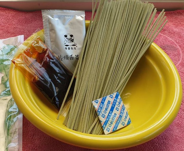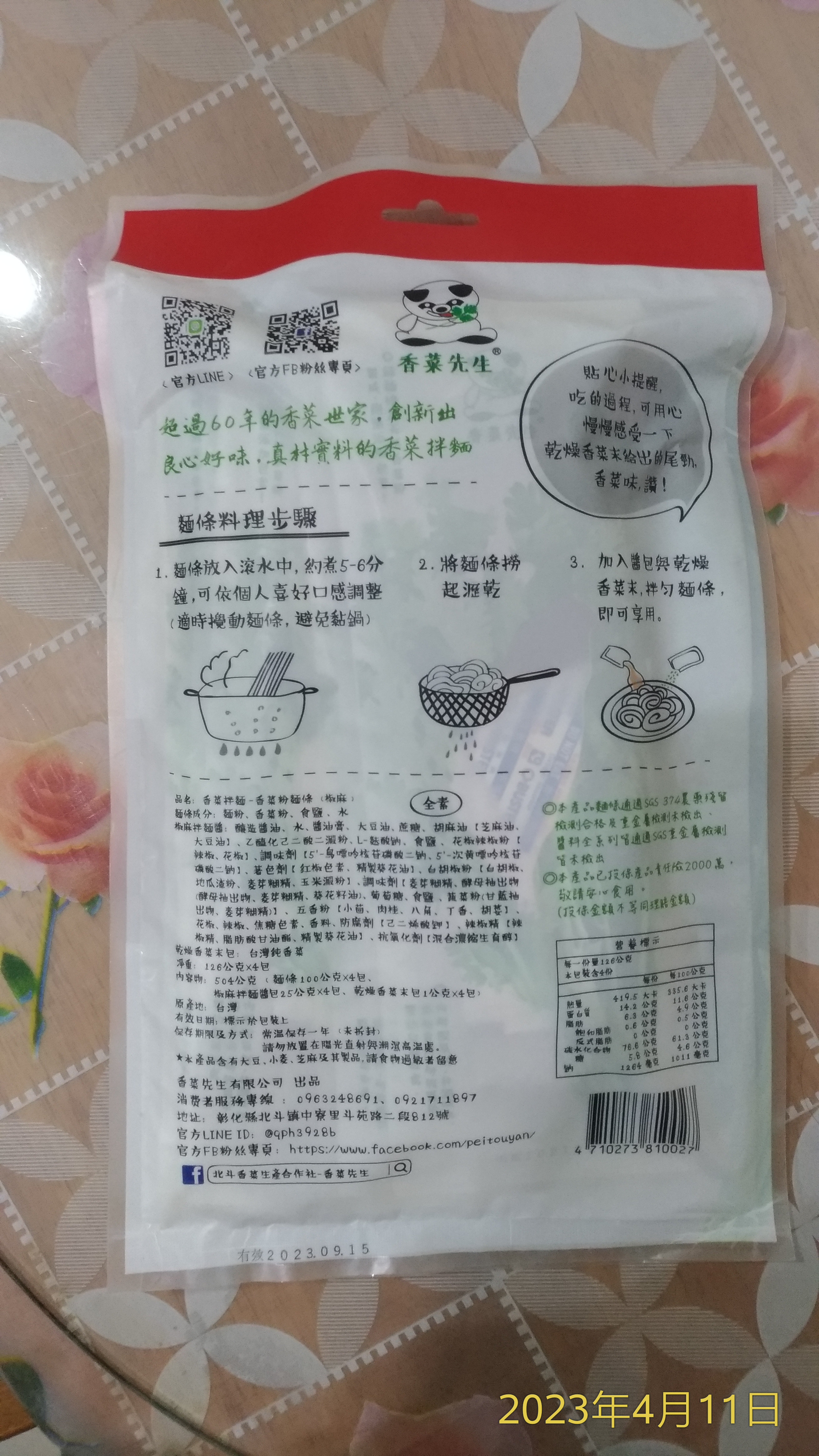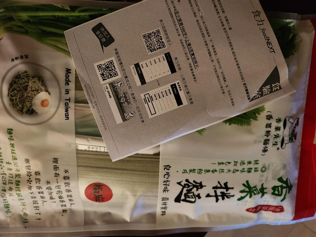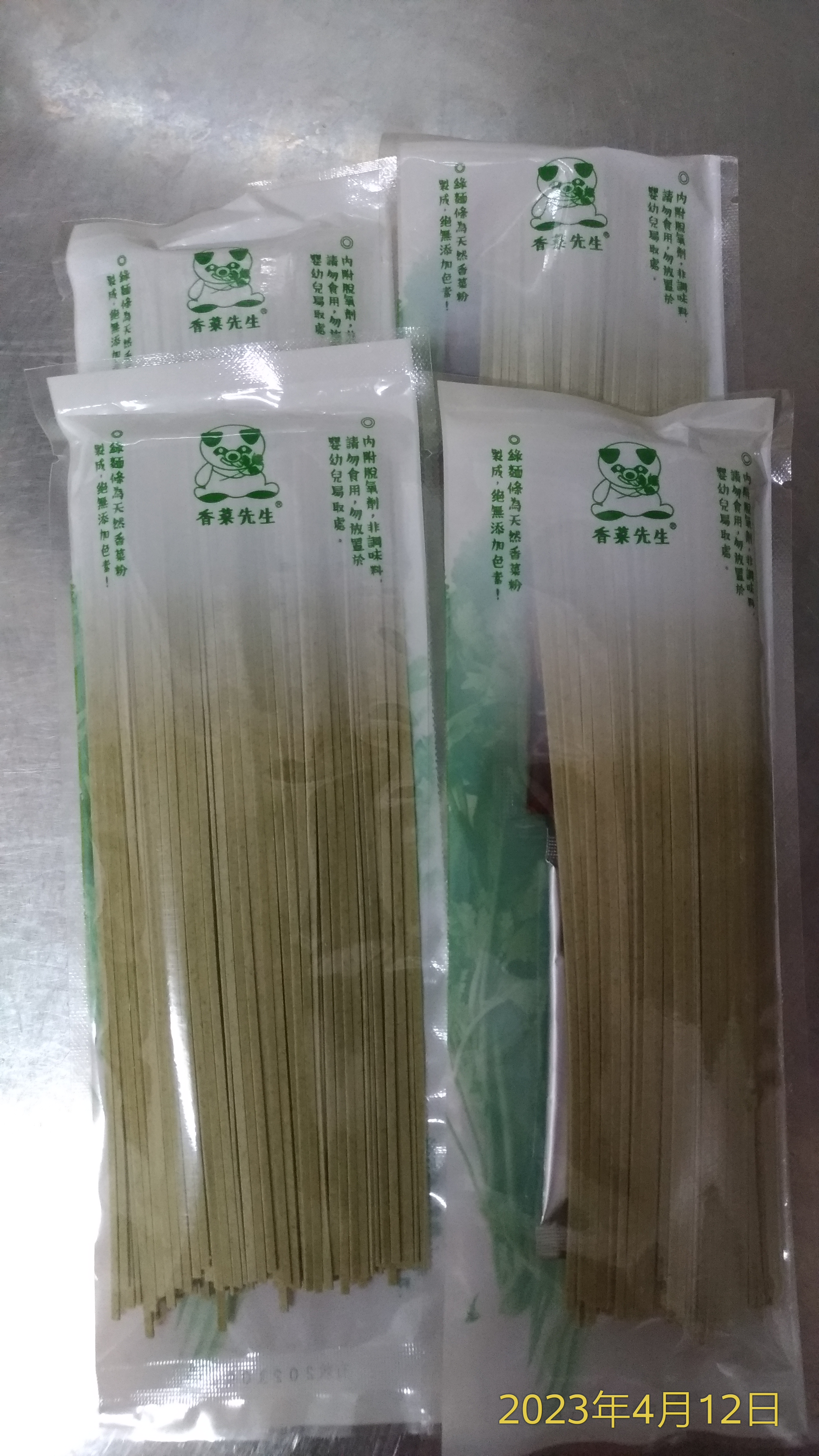 麵條成分:香菜粉、麵粉、食鹽、水。乾燥香菜末包:台灣純香菜。