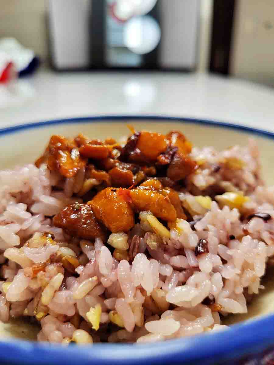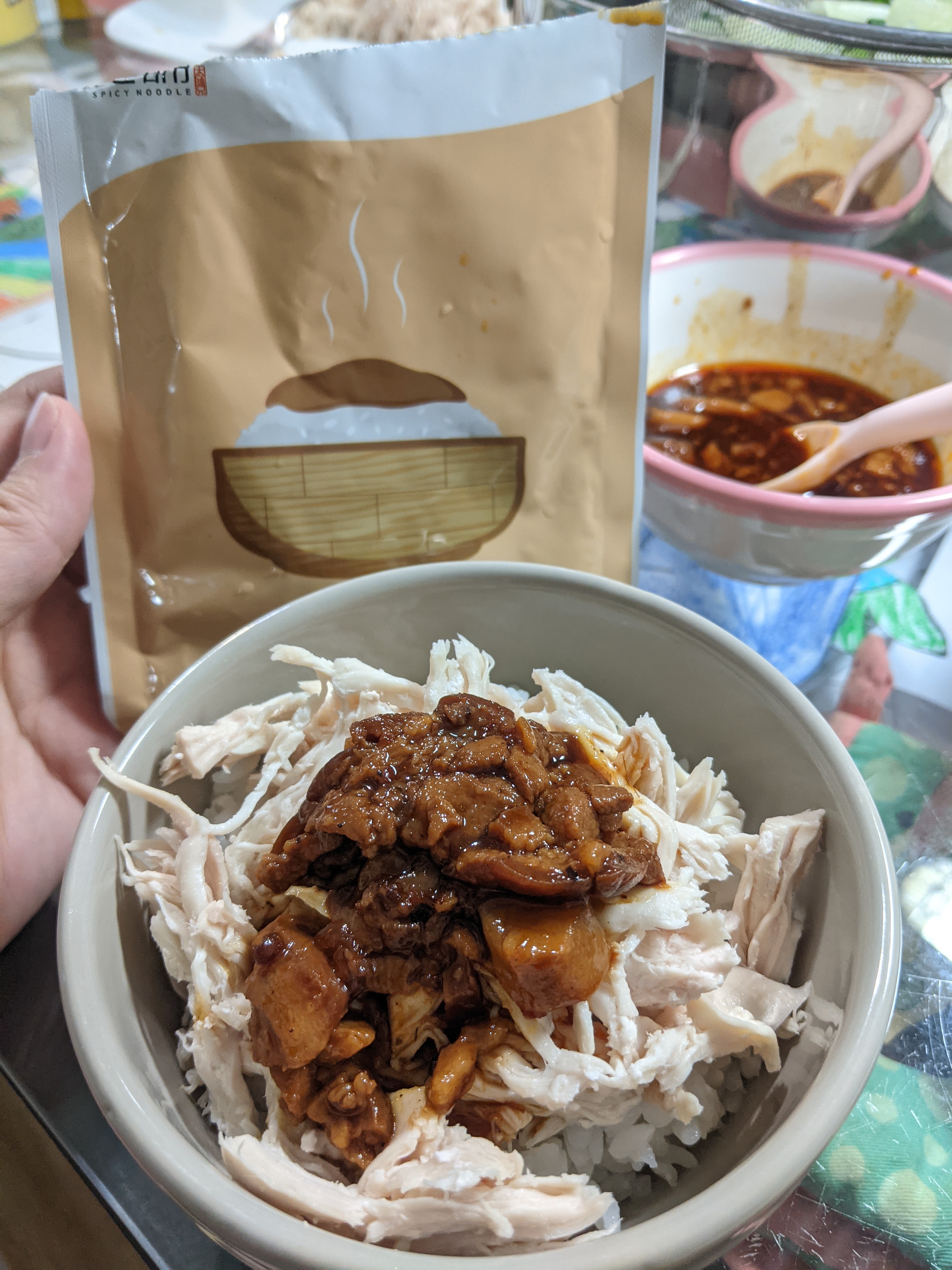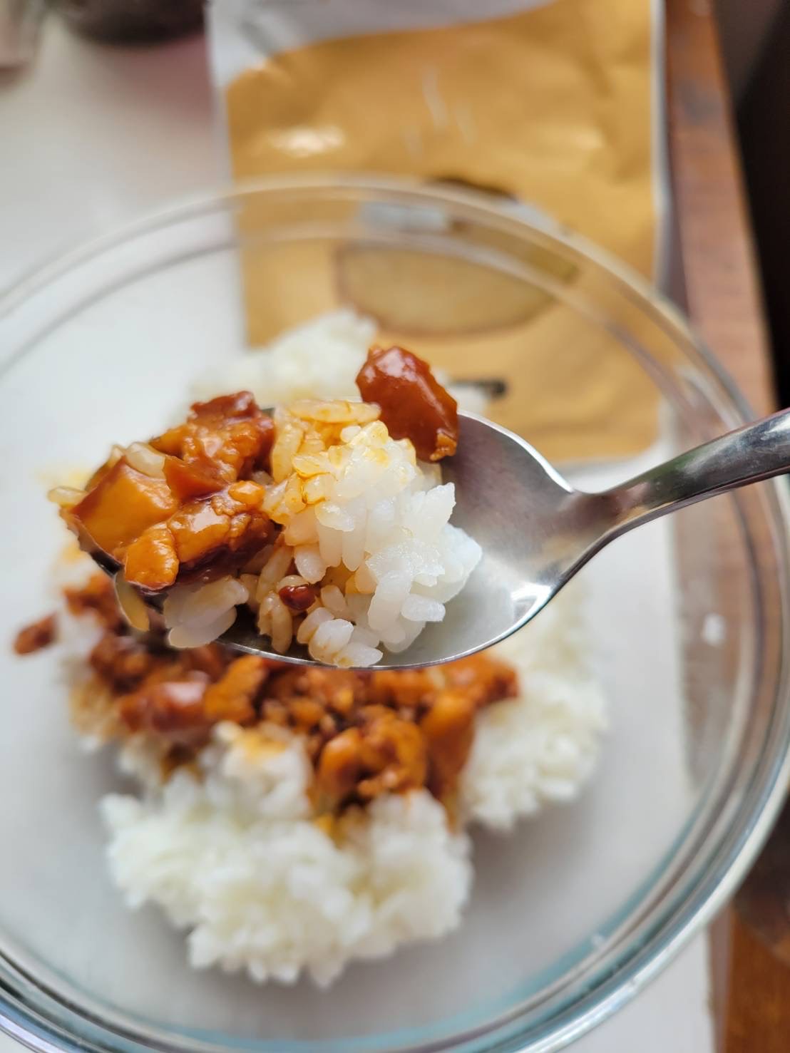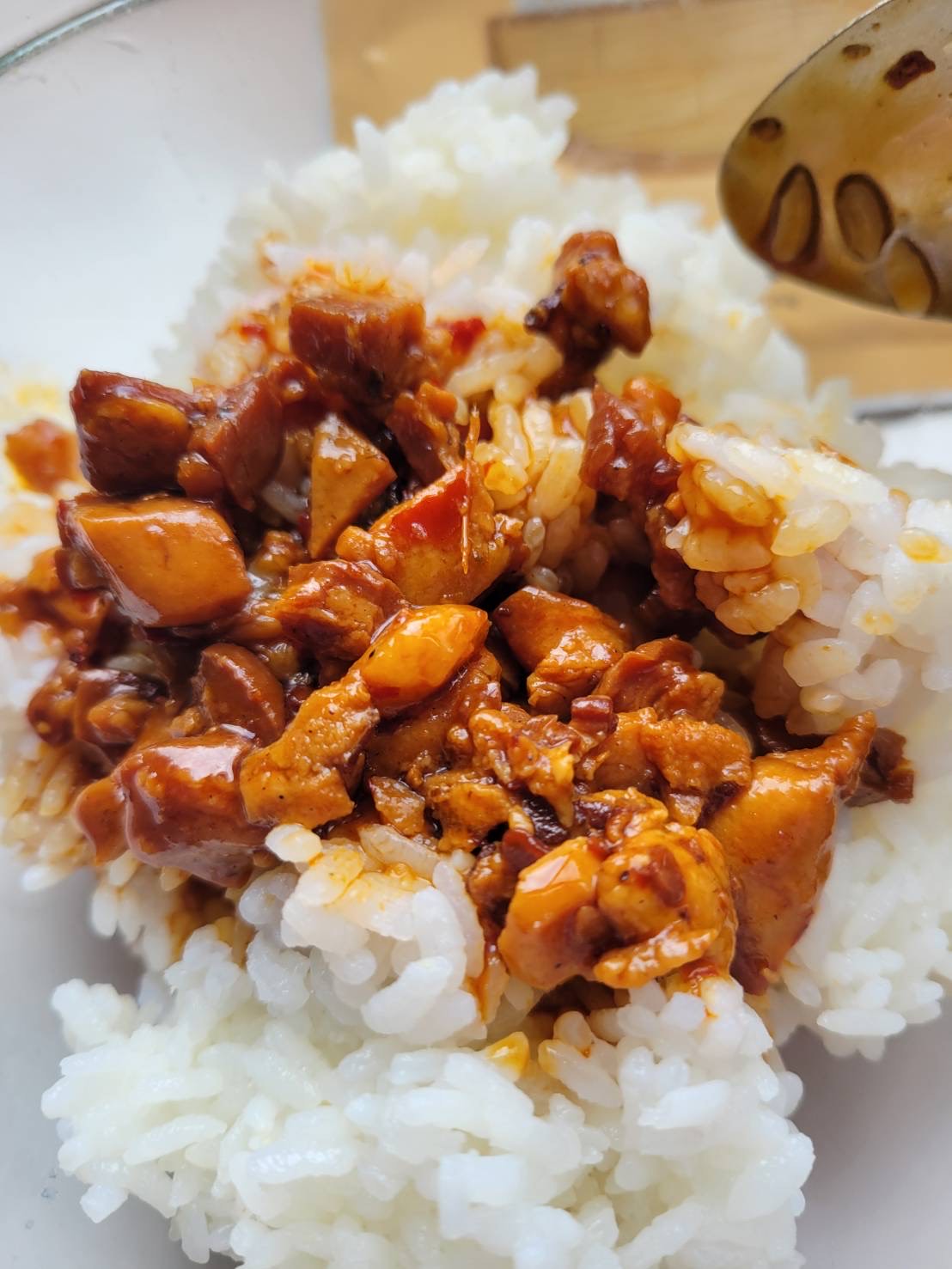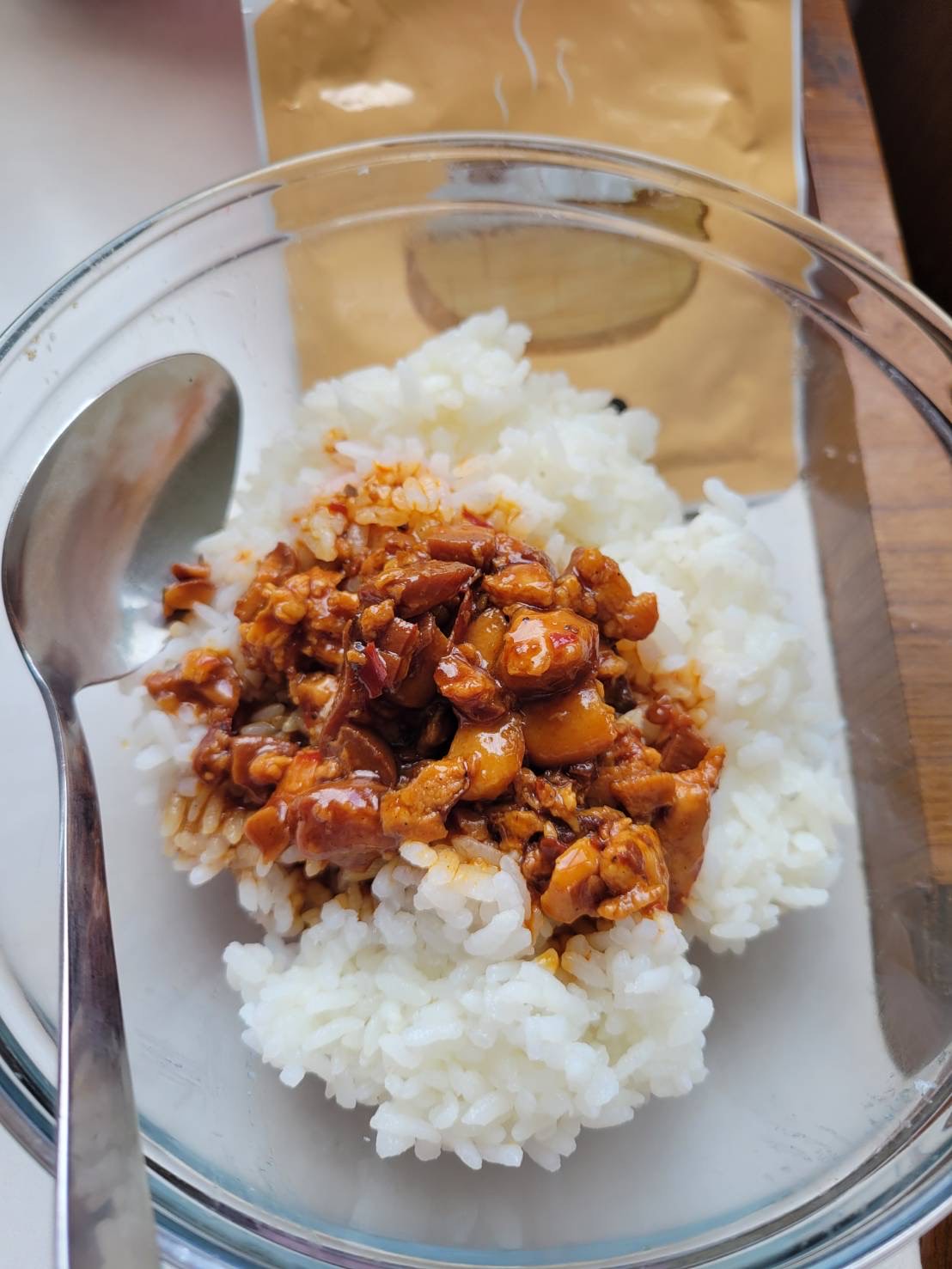 加熱後將內容物淋在熱騰騰的白飯上食用