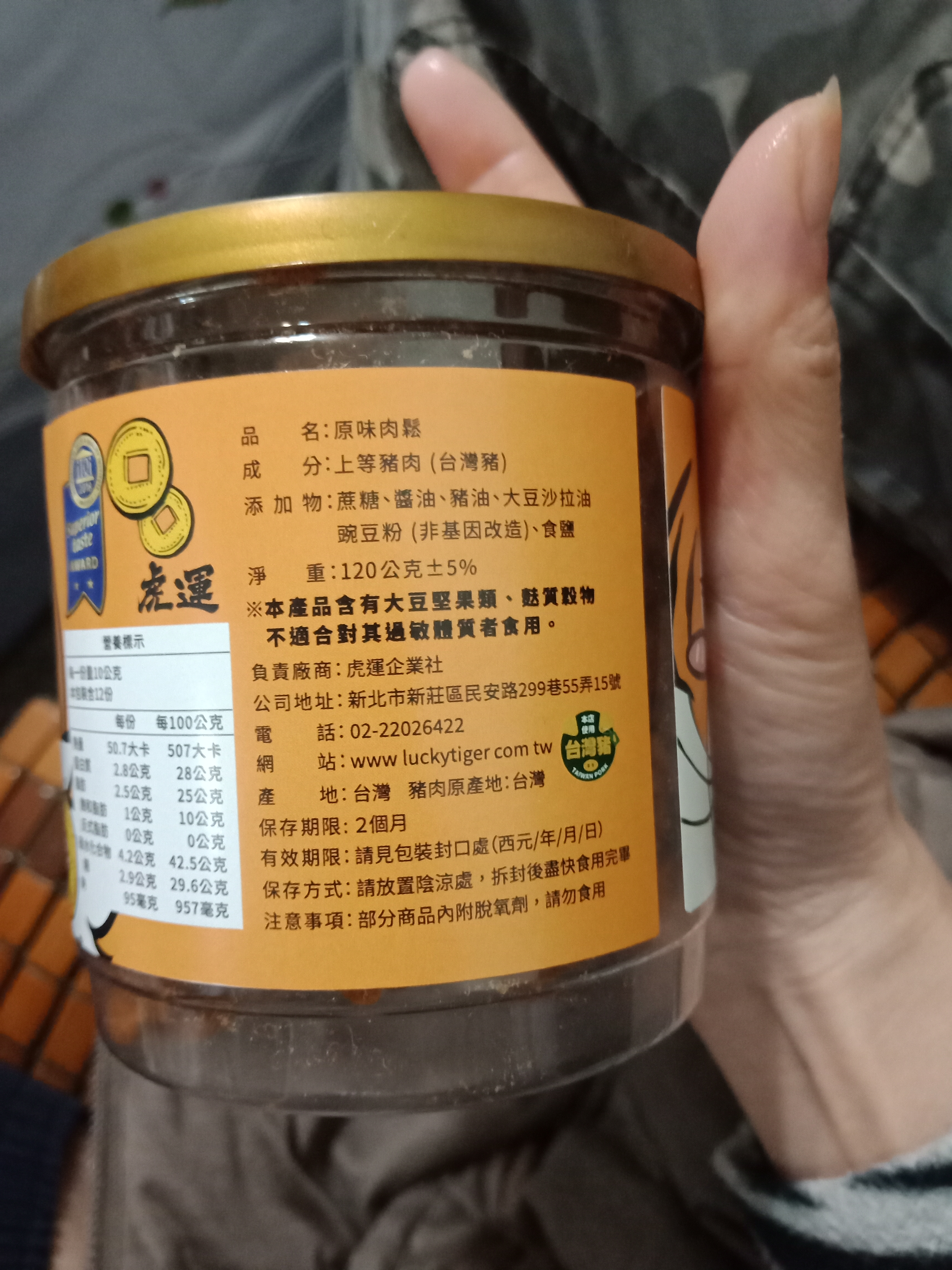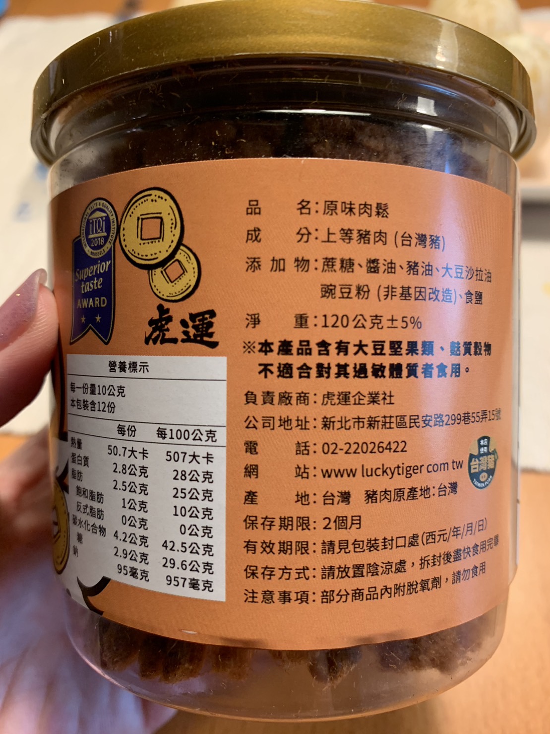 回列表 虎運 罐裝小肉鬆(原味)榮獲食品界米其林二星殊榮 體驗名廚般虎厲害的精品肉鬆 市價199元 (免費申請) 所需等級 一般會員以上 所需學分 60 體驗份數 15 關注人數 1499 申請人數 380 申請截止 品牌業者:虎運 負責廠商 虎運企業社 廠商地址 新北市新莊區民安路299巷55弄15號 產地 台灣 試用產品規格 120g/盒 食品業者登錄字號 F-200113529-00000-5 投保產品責任險字號 南山產險0900223600196904 心得分享 商品介紹 商品成分 使用方法 注意事項 體驗名單 8.9 虎運 罐裝小肉鬆(原味) 肉鬆香氣 9.3 口感層次 9.1 包裝美學 8.8 方便攜帶 9.3 建議推薦 8.9 心得分享 15則 chen yu hsiang 金食達人 32歲 桃園市 2024/01/18 對虎運 罐裝小肉鬆(原味)留下評價 9 包裝很特別,可以在眾多肉鬆當中,一眼認出來。選用豬最珍貴的部位,每隻豬僅有1公斤的中里肌肉,品質把關吃的安心放心,與一般肉鬆不一樣的是,吃起來香氣更加足夠,雖是乾乾的肉鬆,吃起來卻一點也不乾,保有香氣,配飯或入菜都很推薦,包成壽司也一樣好吃。 林心雅 金食達人 46歲 臺北市 2024/01/22 對虎運 罐裝小肉鬆(原味)留下評價 10 虎運肉鬆是個令人驚豔的肉鬆,原本想,肉鬆也能得獎哦?沒想到,一拉開罐頭,就忍不住想要偷吃一口,口感鬆脆,不會太油,也不會太乾,滿滿肉鬆的香氣,重點是小小罐裝方便使用,不沾手也很好倒出來,是搭配稀飯的絕配,連3歲孩子都忍不住多吃幾口,值得推薦。 Athena Chen 鑽石達人 52歲 臺中市 2024/01/17 對虎運 罐裝小肉鬆(原味)留下評價 8 肉鬆在我家應該算是一種受歡迎的零食,不論何時何地都會出現在在家中的任何公共區域。虎運 罐裝小肉鬆(原味) 包裝得很Q,很吸睛。圖案的設計與該有的食品標示都很清楚,但也是細看後發現剩下8天就過有效日期了,所以早上就以最快的速度開罐品嘗。煎了小孩愛的蛋餅當早餐,只能說簡單的日常早餐加了 虎運 原味小肉鬆之後,早餐就變得不一樣了,特別的讓人心情好。做了四人份的肉鬆蛋餅後一罐200g也剛好使用完畢。感覺份量有點少,香氣很足、口感酥脆,方便攜帶外出露營用。 張杏英 鑽石達人 70歲 彰化縣 2024/01/18 對虎運 罐裝小肉鬆(原味)留下評價 10 收到食驗的虎運罐裝小肉鬆,其小巧可愛設計包裝,小朋友對其可愛造型好喜歡,馬上要用其肉鬆來加在最喜歡的飯團上,不管是包在饅頭或者吃飯及稀飯,多是口感層次及肉鬆香氣濃郁,不愧是榮獲食品界米其林二星殊榮,讓我們體驗名廚般虎厲害的精品肉鬆,其嚴選台灣豬隻,品質又層層把關,高溫製作,搶鮮鎖住肉汁,讓我們享受食品界米其林級的味覺饗宴。 周佳雯 鑽石達人 47歲 彰化縣 2024/01/19 對虎運 罐裝小肉鬆(原味)留下評價 9 封口是用易拉環封住,外面再用塑膠蓋,因此沒吃完可以蓋起來,不過小小一罐應該很快就吃完了~吃起來味道鹹鹹甜甜,鬆鬆的口感細緻,肉鬆很純,因為曾經吃過豆粉加比較多的,所以可以感覺得出來肉鬆算蠻純肉的,整體味道口感算是蠻合我胃口的,所以後續可能會回購。 Qqmilo 銀食達人 43歲 臺南市 2024/01/22 對虎運 罐裝小肉鬆(原味)留下評價 9 吃得到肉纖維的口感,很好吃味道單純,調味適中,吃完不口渴成分簡單不複雜,很推薦無論夾饅頭,配稀飯,都非常適合那天吃小蛋糕,覺得太甜於是加上肉鬆,自製鹹蛋糕XD整個改造大成功!只是,市面上哪裡買得到,好像比較不普遍建議通路可以多一點。 丁瑛子 鑽石達人 34歲 彰化縣 2024/01/18 對虎運 罐裝小肉鬆(原味)留下評價 10 好喜歡吃肉鬆~虎運肉鬆是台灣40年傳承三代的職人肉鬆 還連續四年得到食品界米其林iTQi美食風味獎星級米其林品牌 再加上榮獲2018年 iTQi 國際風味評鑑所-風味絕佳二星獎章 嚴選使用台灣溫體豬肉 吃起來香酥可口 不管是單吃配飯都好吃 通過SGS衛生標準檢驗 吃的健康又安心! 陳右人 金食達人 39歲 臺北市 2024/01/19 對虎運 罐裝小肉鬆(原味)留下評價 9 外包裝設計是卡通老虎,個人比較不愛,但看的出來至少是有做品牌設計啦,感覺若是肉鬆禮盒裡面有這個也不錯。打開來肉鬆香氣沒到特別濃郁,就是一般肉鬆懊香味,吃起來有比一般的肉鬆酥一點(外面賣的肉鬆有的粉粉的),配飯很不錯。 Fireci 金食達人 29歲 新北市 2024/01/20 對虎運 罐裝小肉鬆(原味)留下評價 9 感謝本次試吃商品<虎運-罐裝原味小肉鬆>一罐120g份量剛好,罐身貼紙是討喜的老虎圖樣,小巧可愛適合拿來送禮,唯一一點美中不足的是,收到的試吃品塑膠上蓋有個小裂口,但幸好裡面還有易開罐確保內容物。打開來可以聞到肉鬆的香氣,不會有油耗味,吃起來非常酥鬆,鹹中帶微微的甜,單吃的話微鹹,配白飯吃鹹度剛好。整體來說,我很喜歡虎運-原味小肉鬆的調味和酥酥的口感,不知不覺就吃了半罐,推薦給大家。 劉怡君 金食達人 37歲 新北市 2024/01/22 對虎運 罐裝小肉鬆(原味)留下評價 9 第一眼就先被包裝設計的虎頭給吸引住,太像我家的貓了,居然還拍到了一樣的表情,真的是超可愛!這款肉鬆在口感上,吃起來有一點點纖維感,口感蓬鬆不會乾巴巴,不像一些肉鬆會像粉一樣,鹹度調得很剛好,而且有一種微甜的味道,很適合搭配三明治、蛋餅、拌飯拌麵,甚至其他肉鬆料理都很合拍!另外包裝小罐輕巧、方便攜帶,也很適合登山、野餐、自帶便當的朋友噢! 林嬋語-製一 鑽石達人 38歲 高雄市 2024/01/23 對虎運 罐裝小肉鬆(原味)留下評價 9 很開心能獲得虎運 罐裝小肉鬆(原味)試