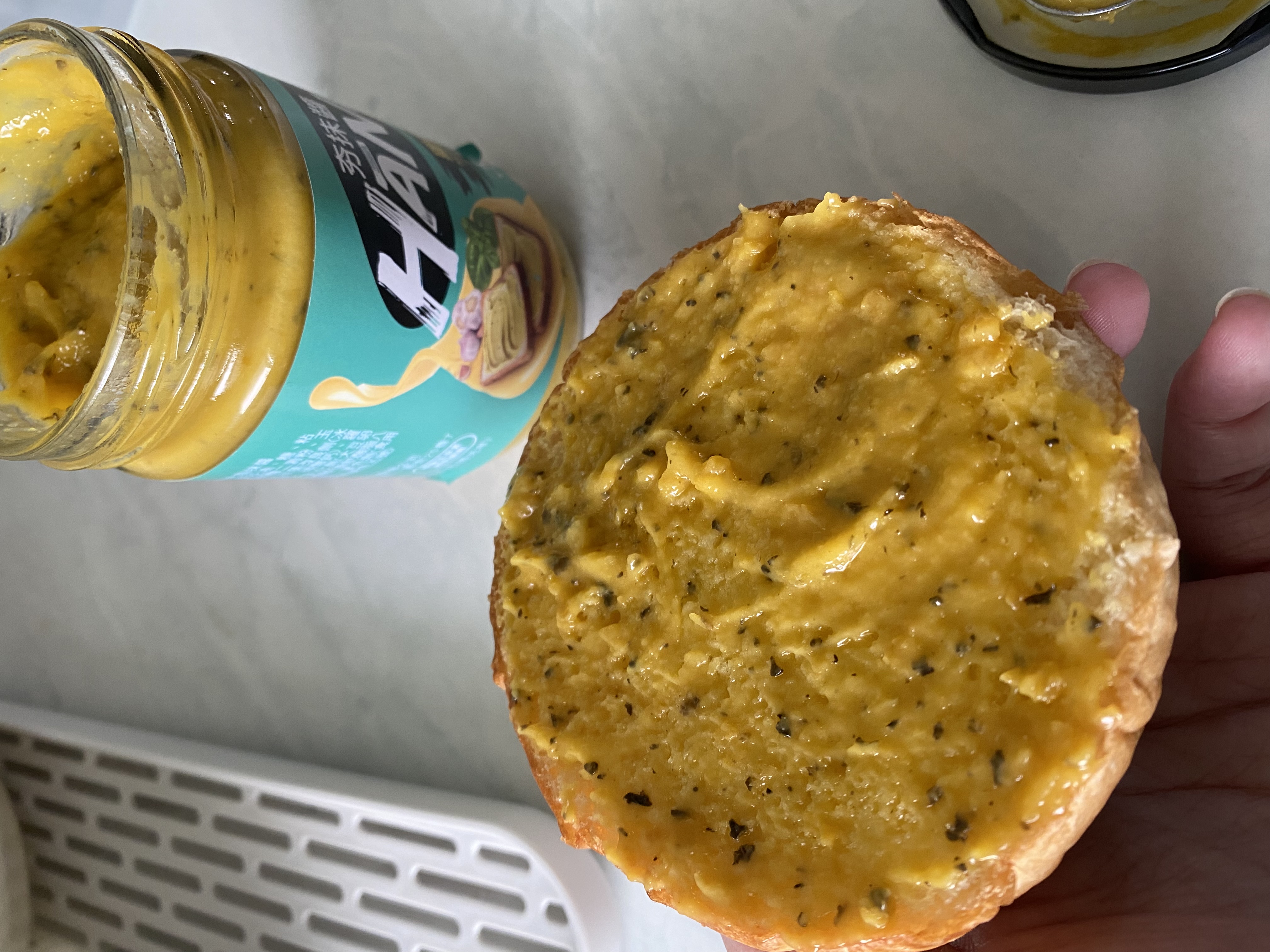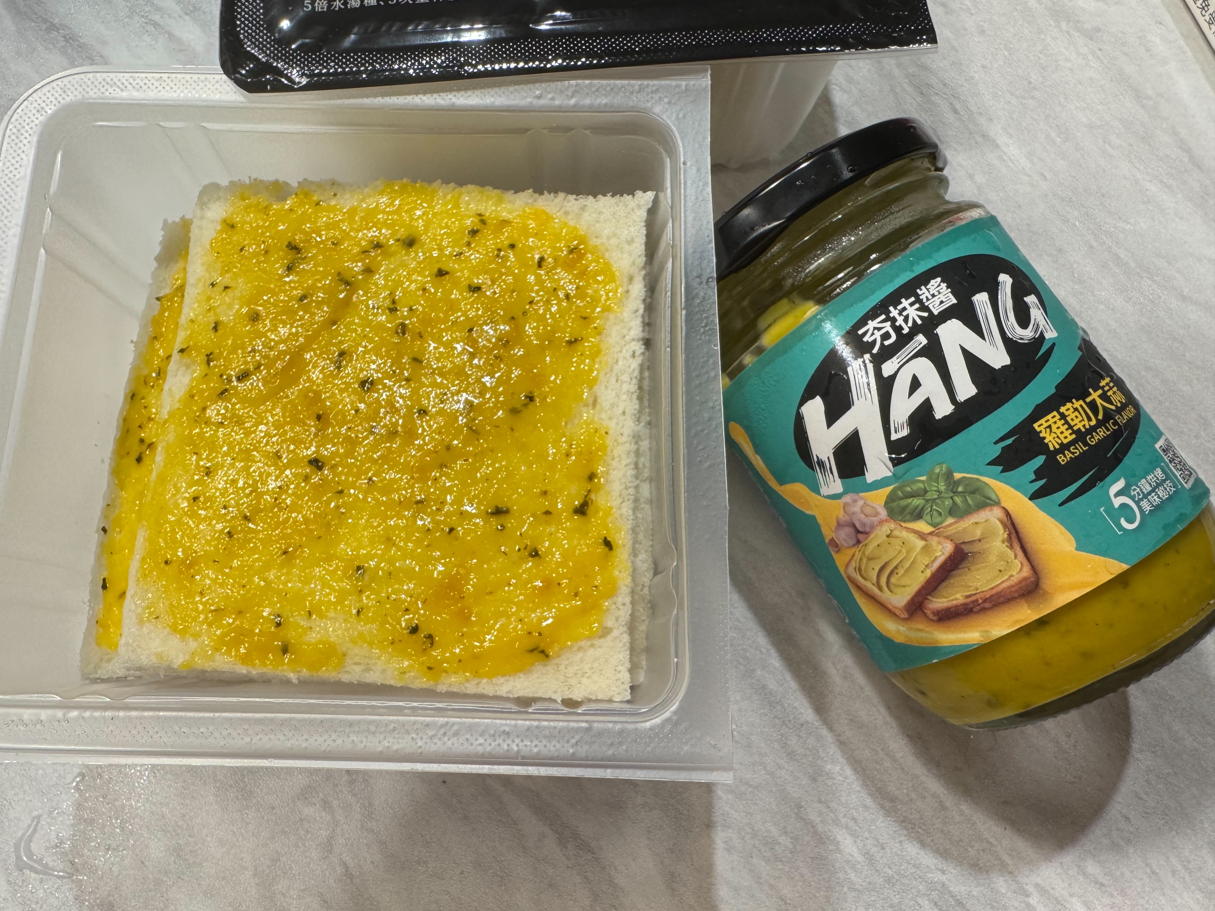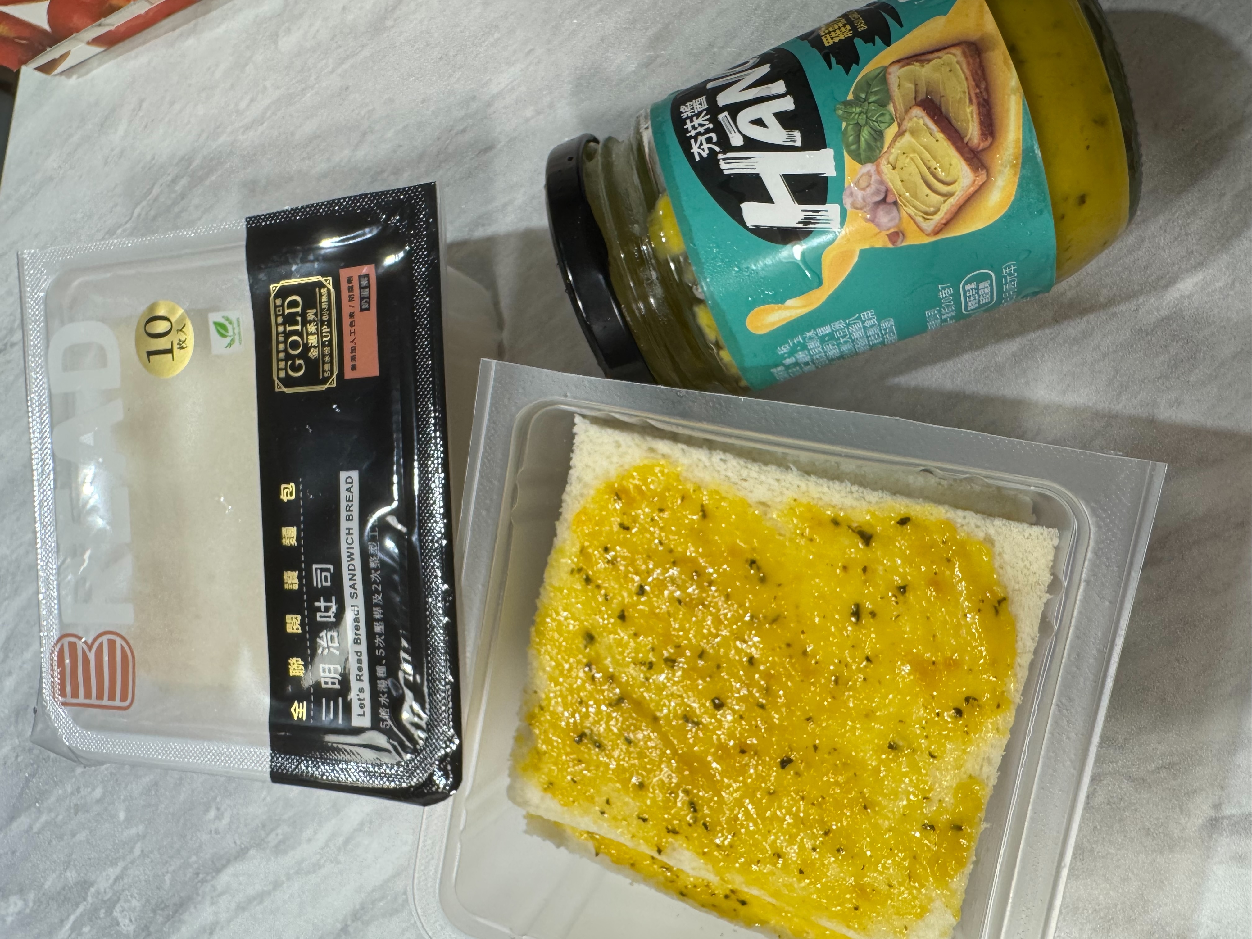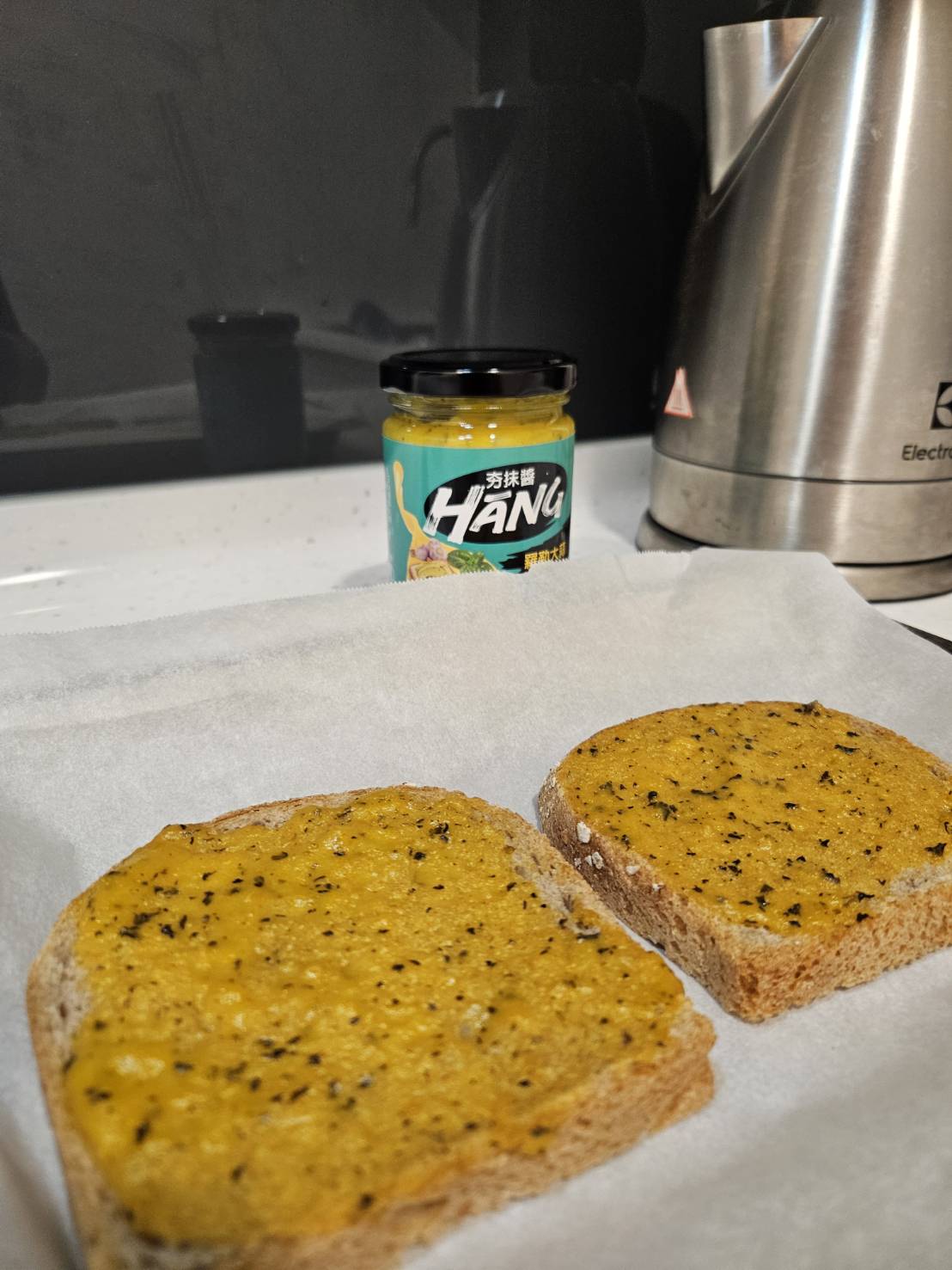 1.在土司或麵包上塗上滿滿的夯抹醬